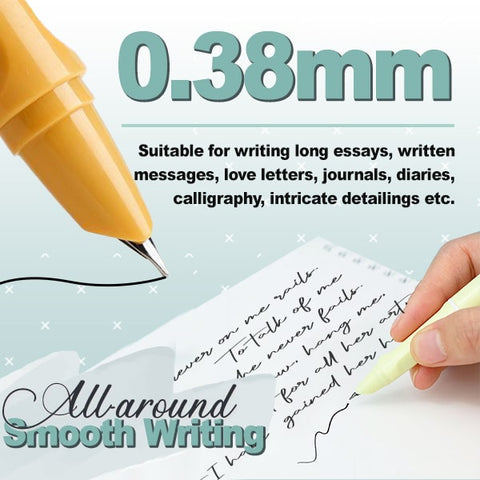 - Take your writing to the next level with this smooth writing pen. The 0.38mm nib provides a smooth and long-lasting writing experience. The ink dries quickly and is not prone to stains or smudges, ensuring bright and sharp colors on any paper without bleeding ink or scratching the surface.