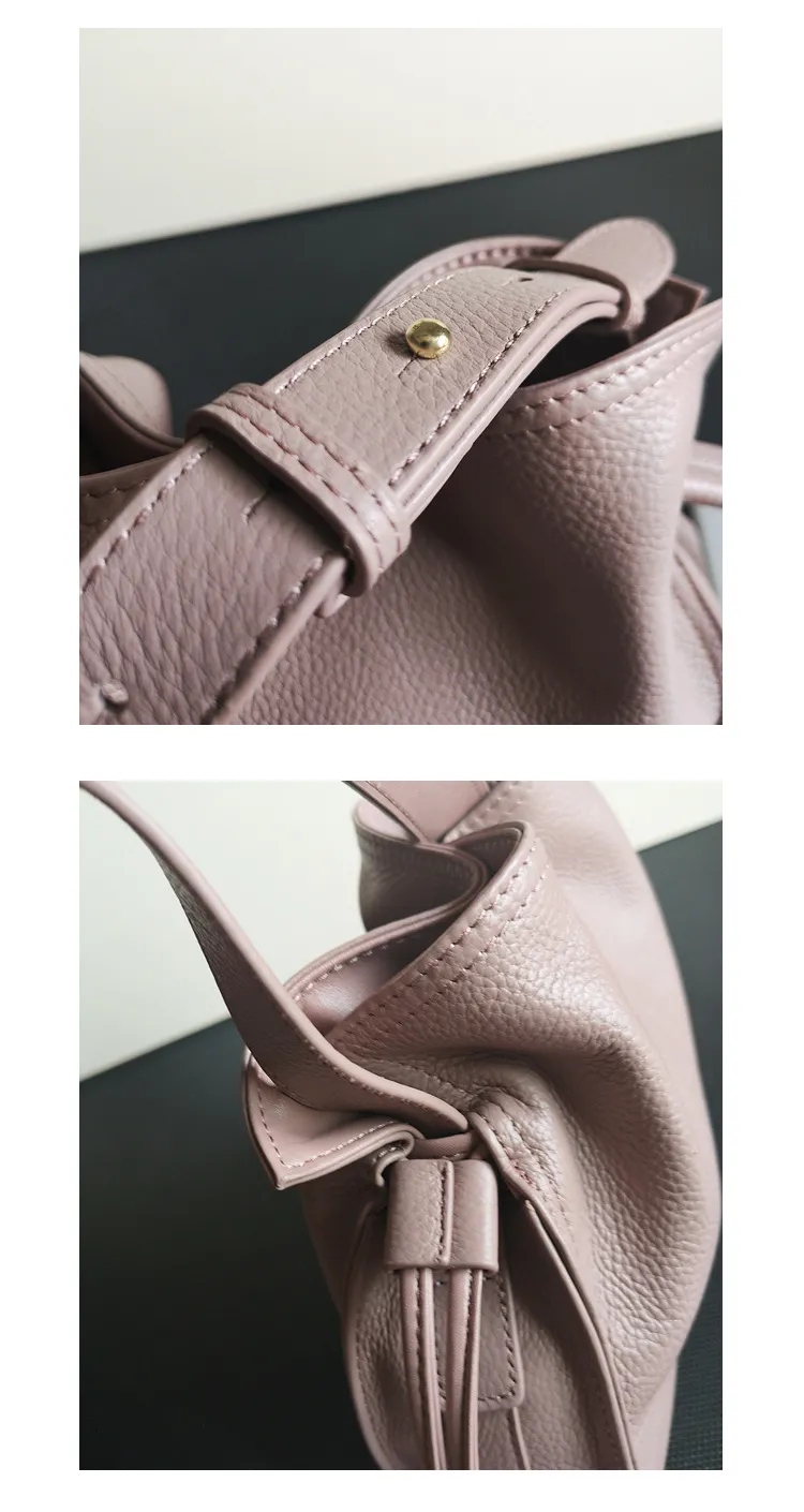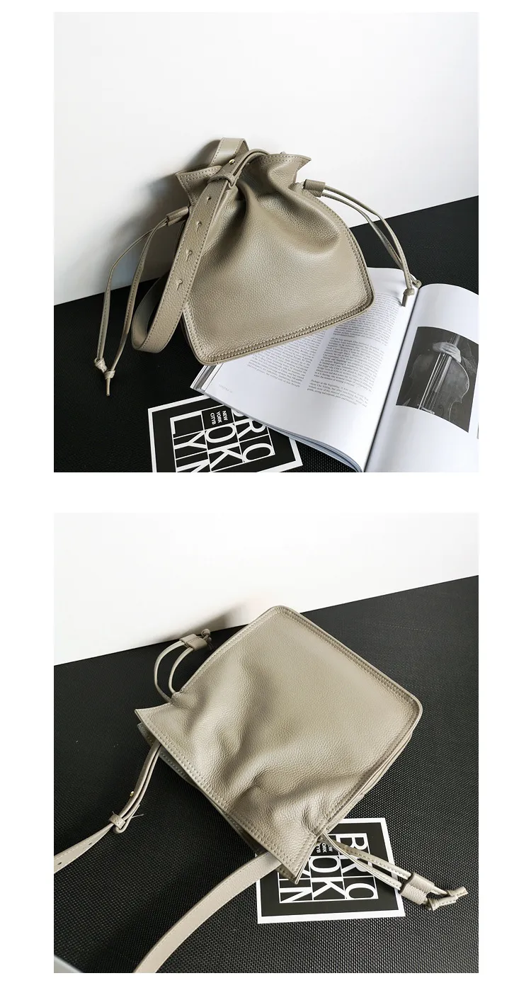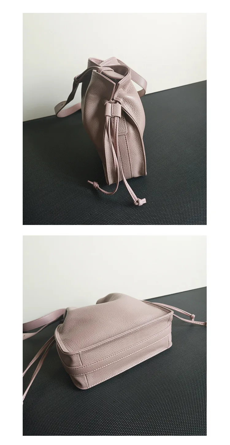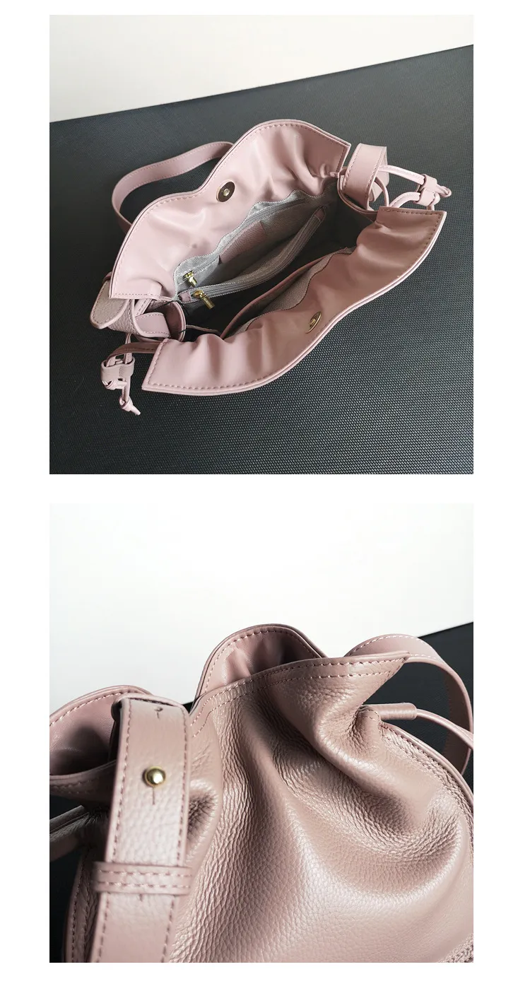One-shoulder Crossbody First Layer Cowhide Pull-belt Bucket Bag