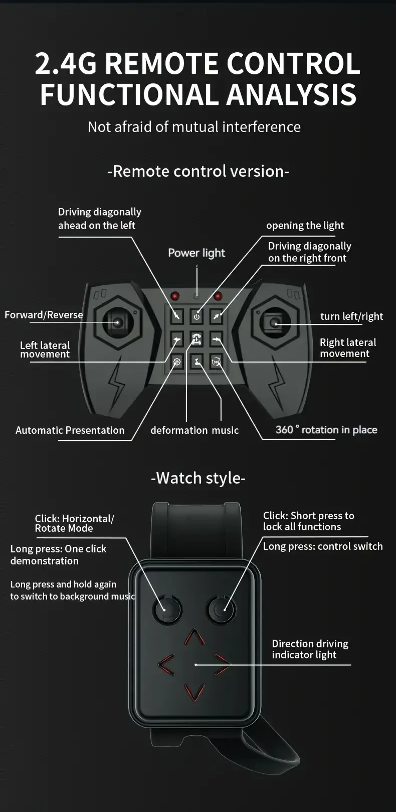 - Dual Remote Control: Switch between gesture and remote control for versatile play.