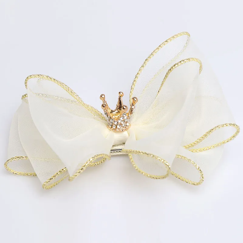 Organza Bow Hairpin Children's Crown Top Clip Hair Accessory