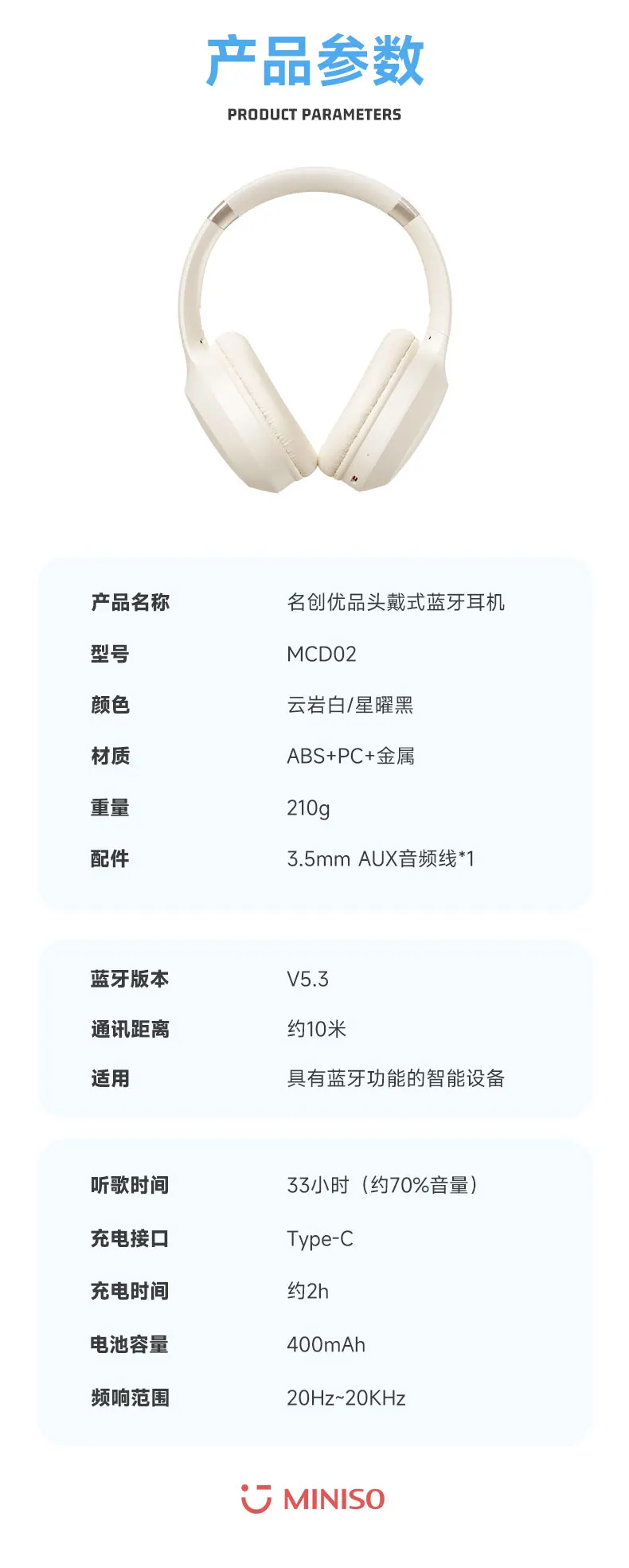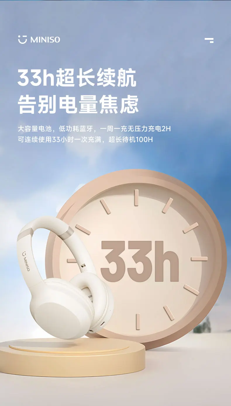 The MINISO MCD02 Bluetooth V5.3 Headset combines advanced audio technology with a sleek, portable design, making it an ideal choice for those who demand high-quality sound and convenience on the go. With its HIFI sound, low latency, and portable folding capabilities, the MCD02 is perfect for travel, outdoor adventures, and everyday use. This 2023 new model offers a modern listening experience that caters to audiophiles and casual listeners alike.