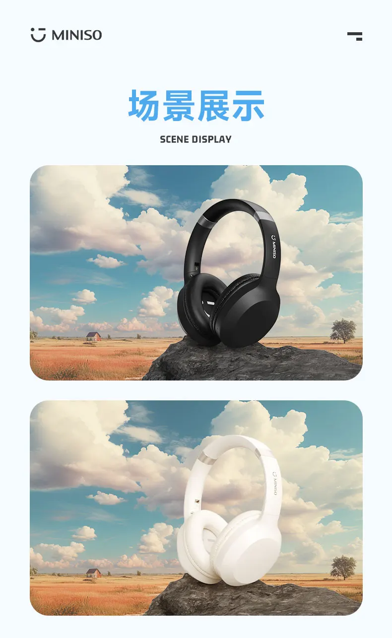 The MINISO MCD02 Headset features a modern and minimalist design with a sleek, matte finish. The headphones are available in various stylish colors, offering a blend of aesthetic appeal and functionality. The lightweight, foldable design ensures that the MCD02 is easy to carry and store, making it an excellent companion for travel and outdoor activities. The adjustable headband and cushioned ear cups provide a comfortable fit, enhancing your listening experience.