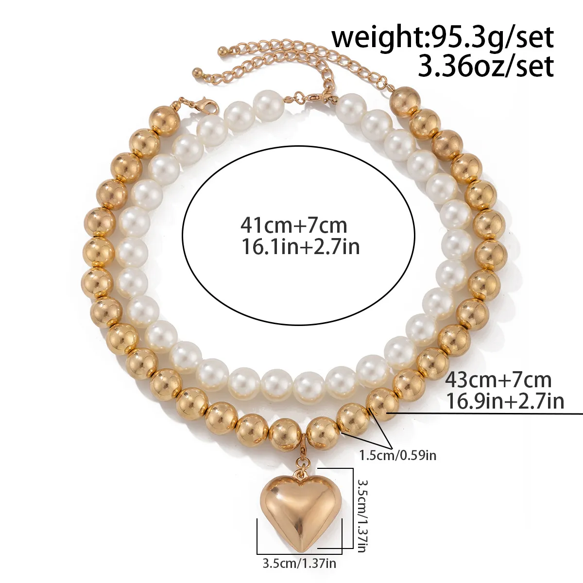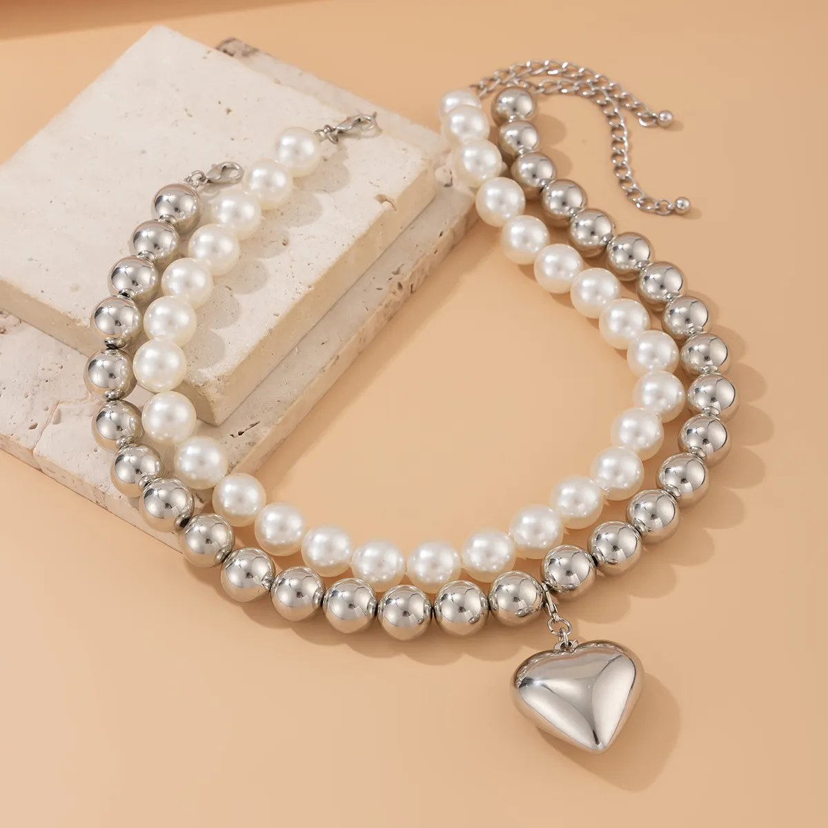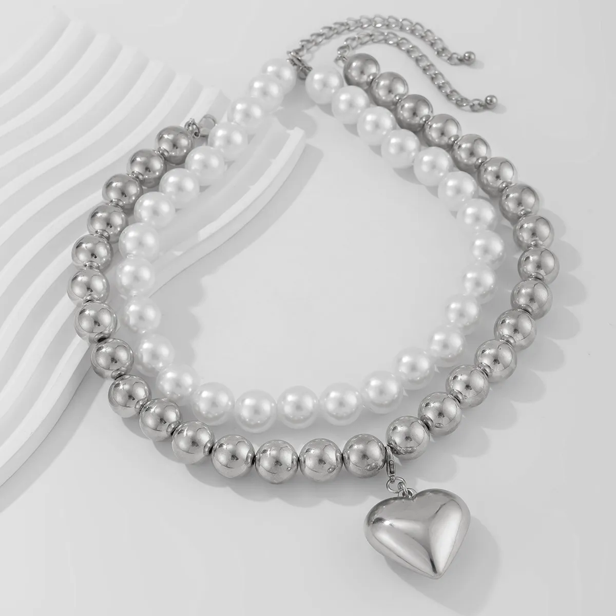 Ornament Pearl Heart Clavicle Chain Beaded Heart-shaped