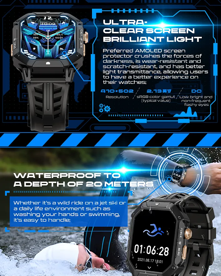 - Waterproof Design: Swim, surf, or sweat confidently with IP68 water resistance.