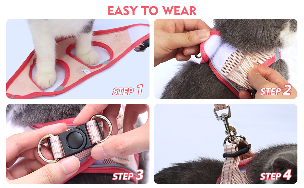 - ESCAPE PROOF CAT HARNESS - The harness are designed in a Y-shape structure to better fit the pet's body. Use adjustable sticky velcro wraps around the cat's body to prevent escape, quick release buckle Provide secondary protection. Double protection makes it difficult for cats to escape