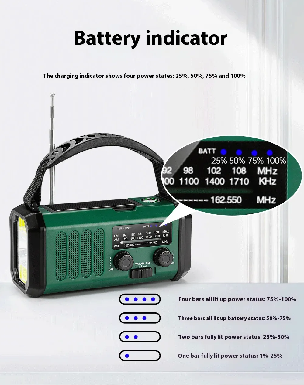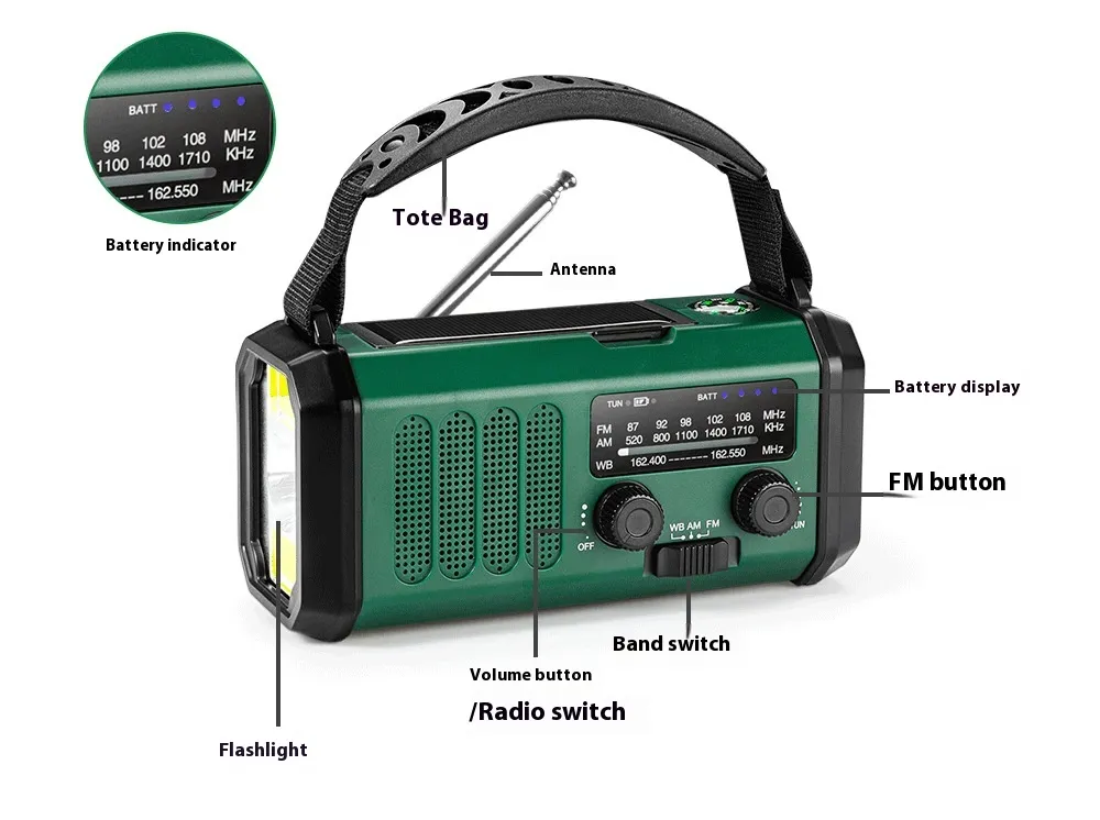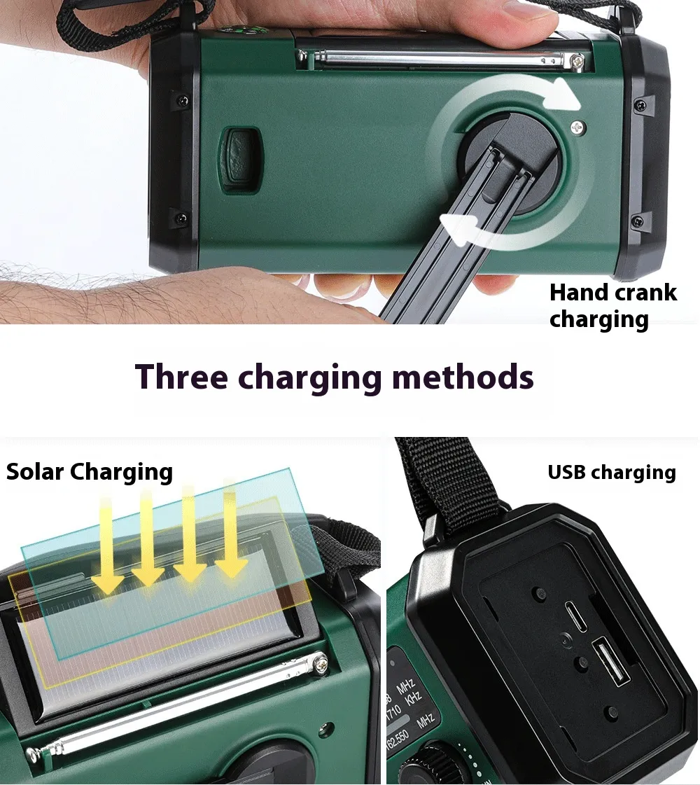 - FM/AM Radio: Use the radio function to tune into local FM and AM stations. This is ideal for staying up to date on weather forecasts, news, or emergency broadcasts while you’re outdoors.