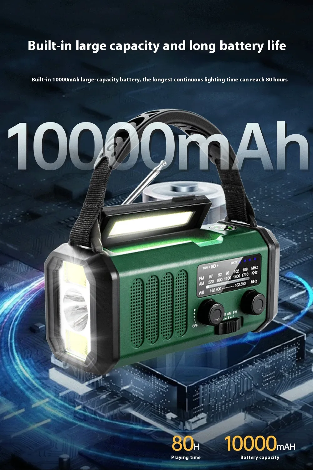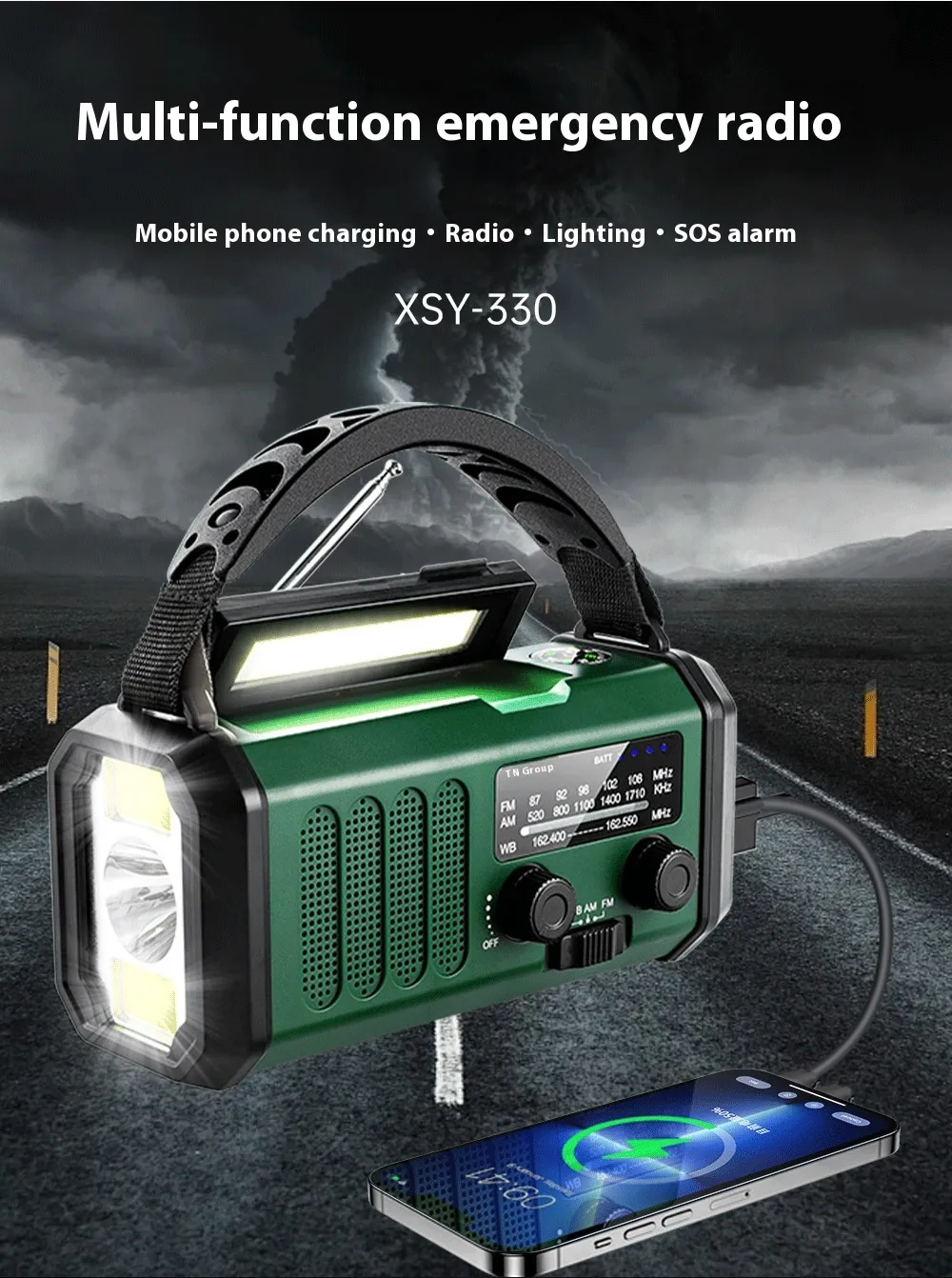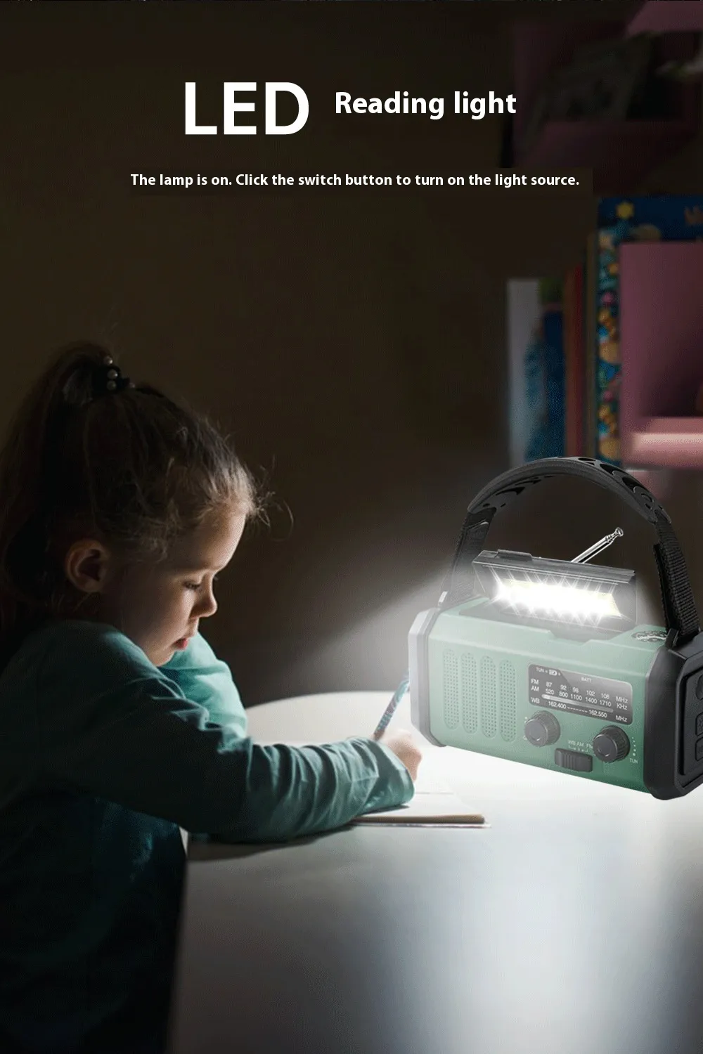 - Camping: Stay safe with reliable light and stay connected to weather updates and news through the FM/AM radio.