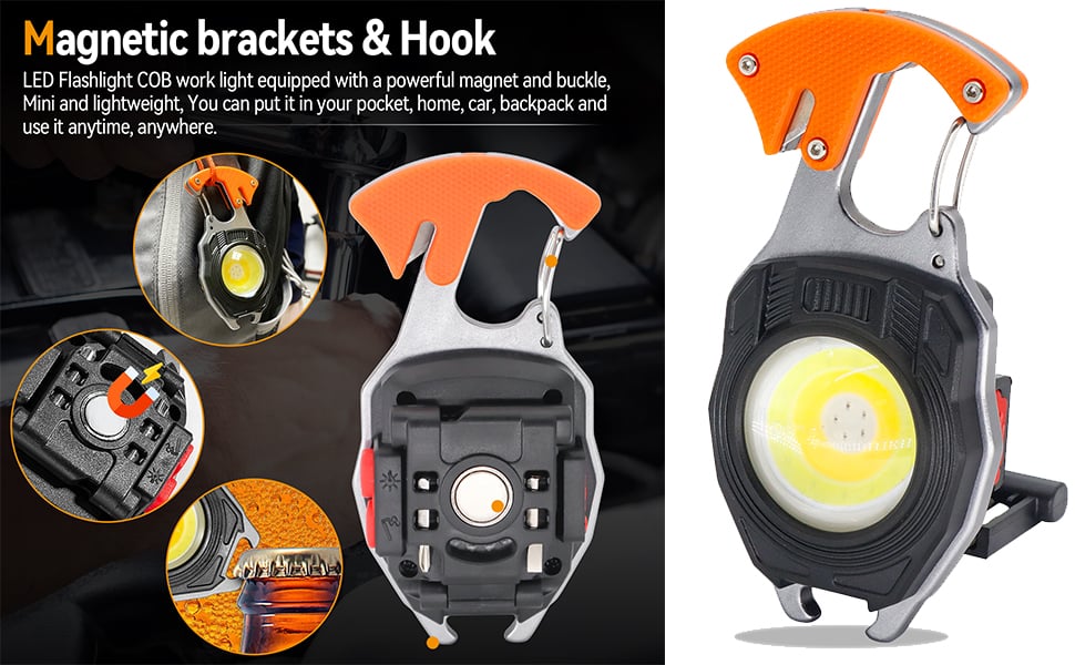 - Lightweight & Portable: Small LED Flashlight COB work light equipped with a buckle, weighs only 70 gram. You can put it in your pocket, home, car, backpack and use it anytime and anywhere.