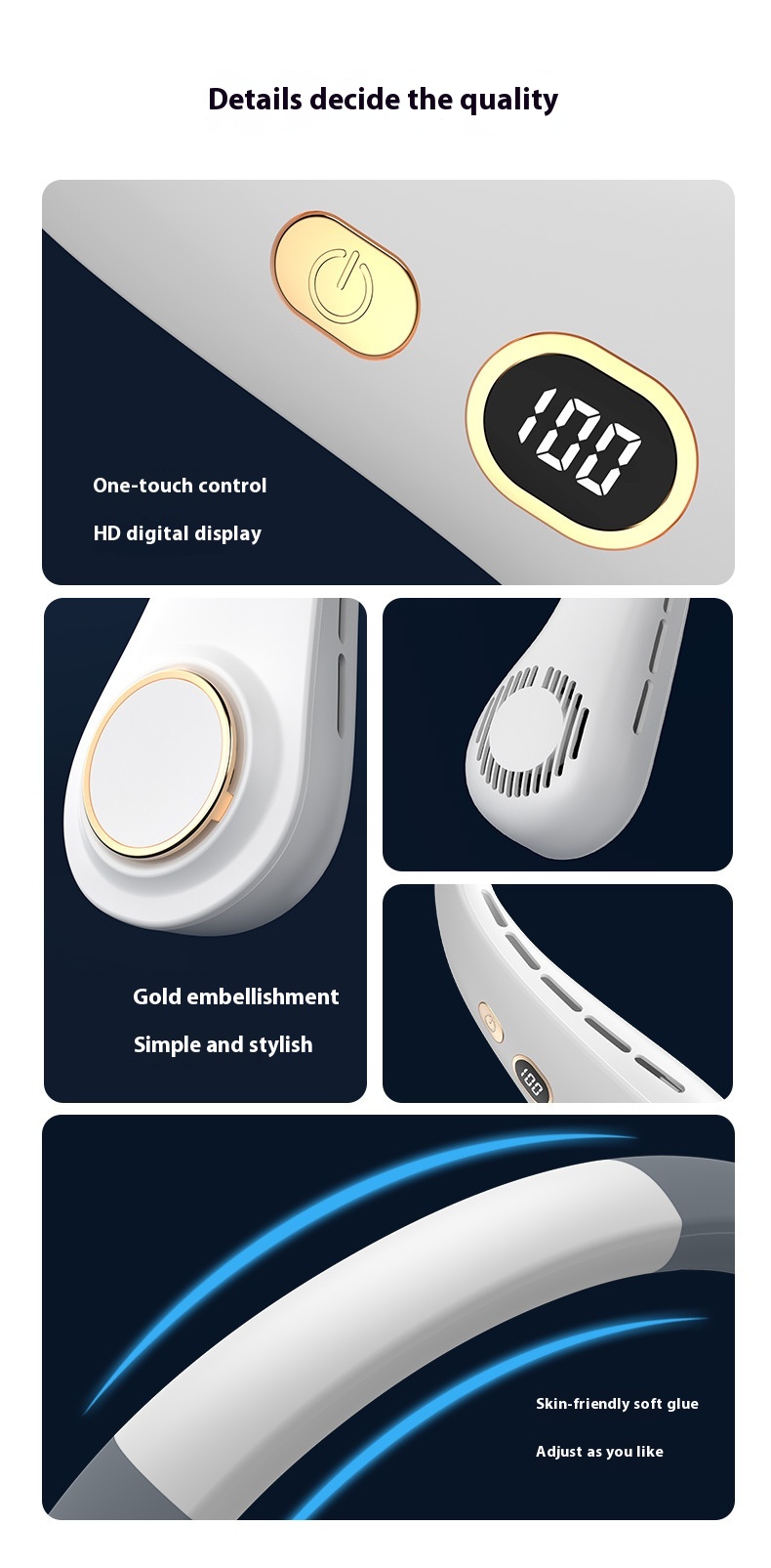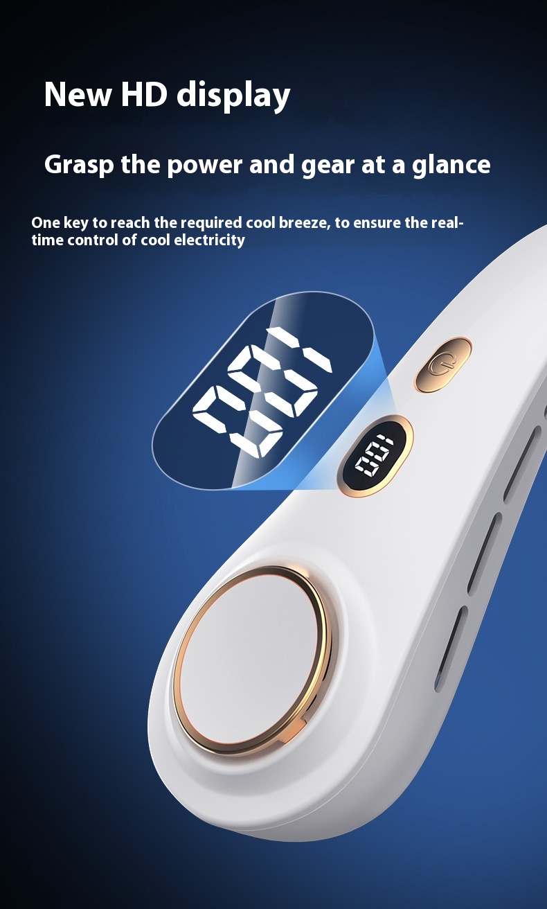 The Outdoor Portable Digital Display Halter Fan is a versatile and compact cooling solution designed for on-the-go comfort. Featuring a sleek digital display, this fan allows easy control of speed and settings. Its lightweight and ergonomic halter design ensures a comfortable fit around the neck, providing hands-free convenience. With a rechargeable battery, it offers long-lasting performance, making it perfect for outdoor activities, travel, and workouts. Enjoy a refreshing breeze anytime, anywhere with this stylish and practical portable fan.