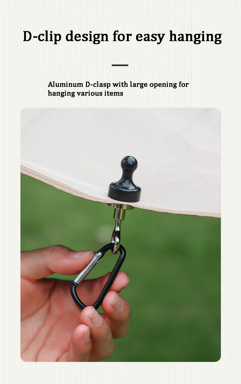 - Hang Gear: Use the hook to hang camping lights, canopies, or other gear. Ensure the items are securely attached and within the weight capacity of the hook.
