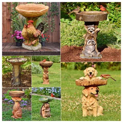 Wild bird feeders is a great gift for holidays, birthdays, father's day mather's day housewarming banquets or any occasion. Your friends and family members will love this resin statue bird bath bowl. We have 7 styles for you to choose from, pick one that you like best to take home, or you can take them all to the garden for a home with a special atmosphere.