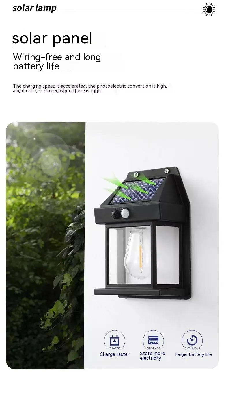 This Outdoor Solar Wall Lamp stands out for its combination of eco‑friendly operation, easy installation, and reliable performance. Unlike traditional outdoor lighting systems that require wiring and ongoing electricity costs, this solar lamp uses renewable energy to provide bright lighting with minimal effort. Its motion sensor adds a layer of convenience and security, activating only when needed and conserving energy when not.