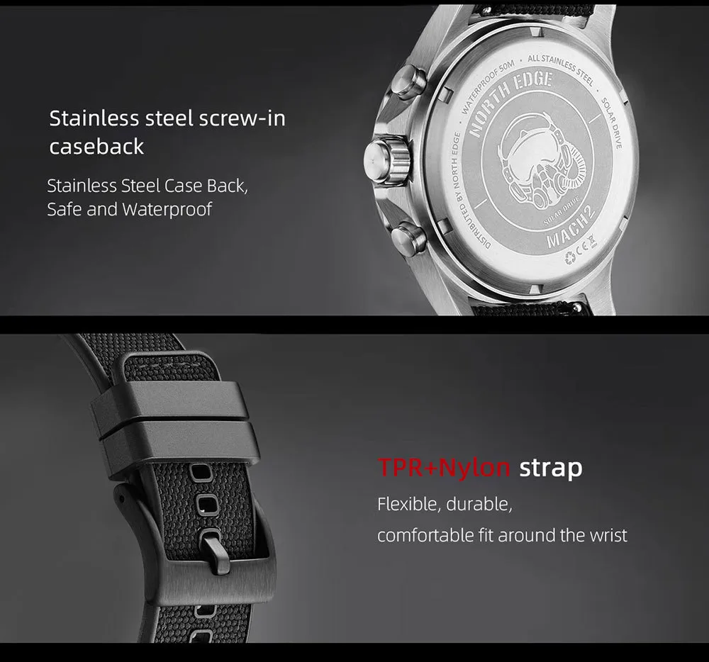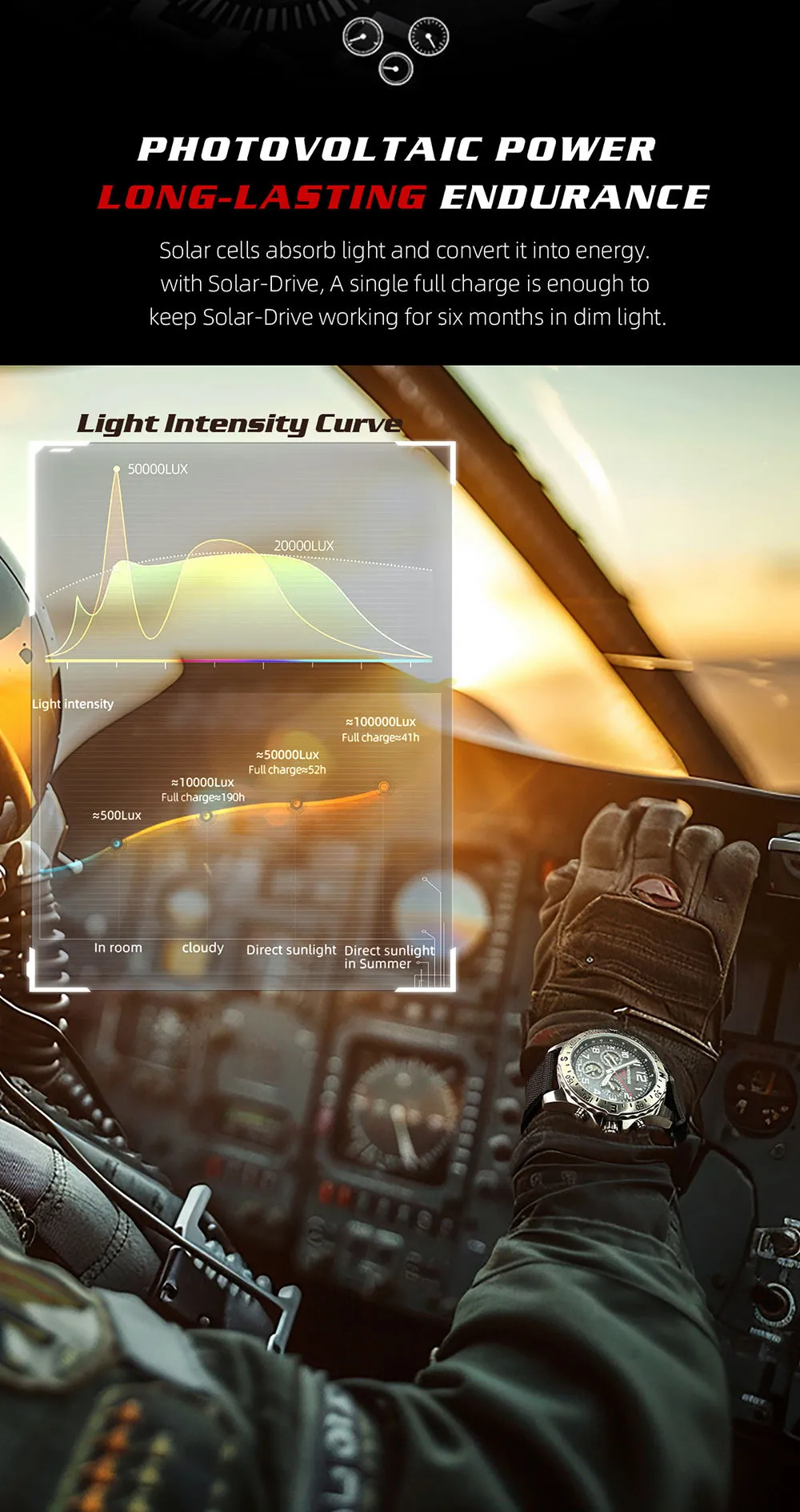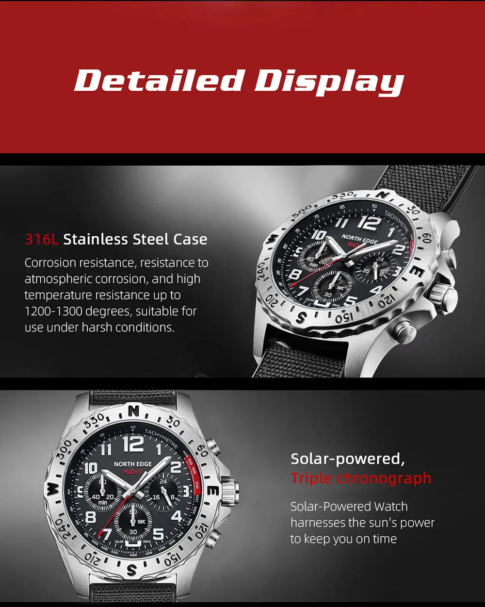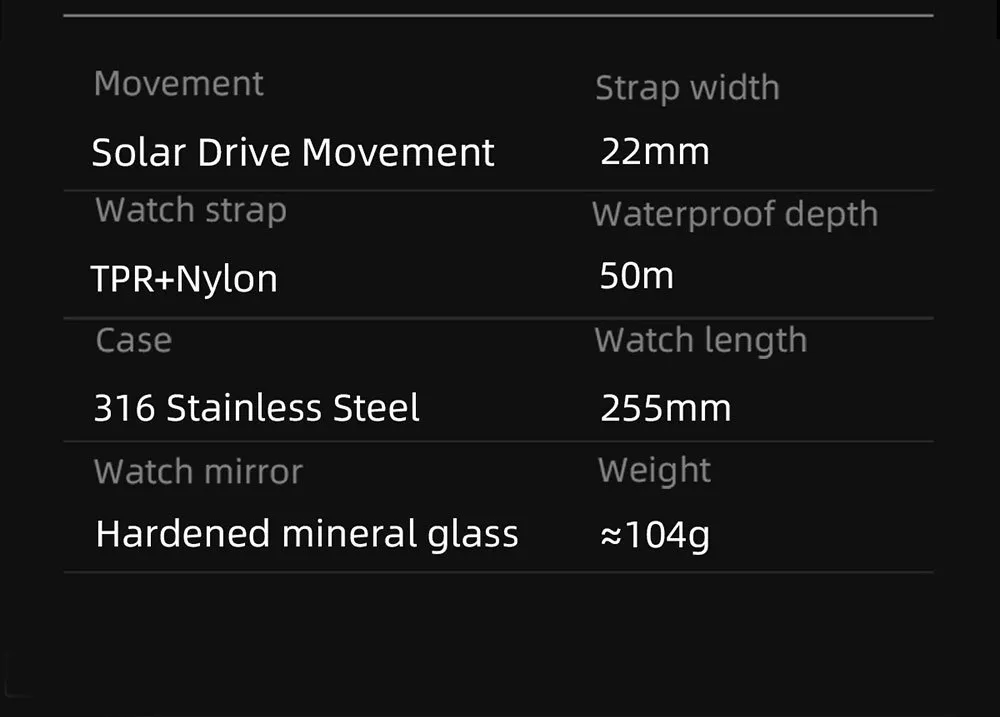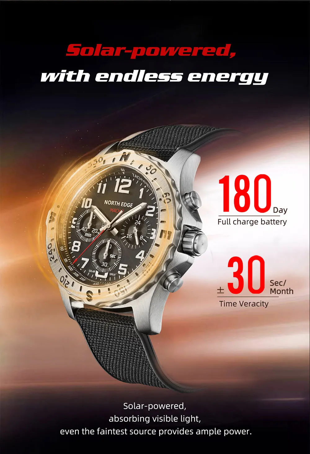 elements while maintaining a sleek, modern look. The innovative solar energy technology harnesses sunlight to power the watch, providing an