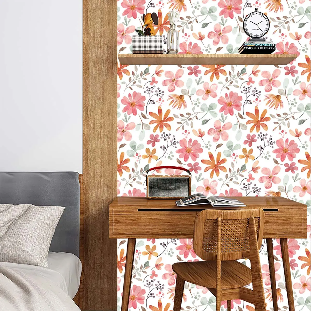 Accent Wall: One of the most popular ways to use oversized floral wallpaper is on a feature or accent wall. Choose one wall