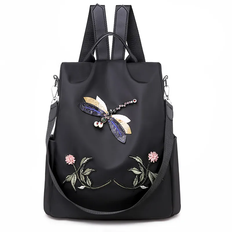 elegance and practicality. Featuring intricate dragonfly embroidery on durable Oxford cloth, this backpack is perfect for casual outings,