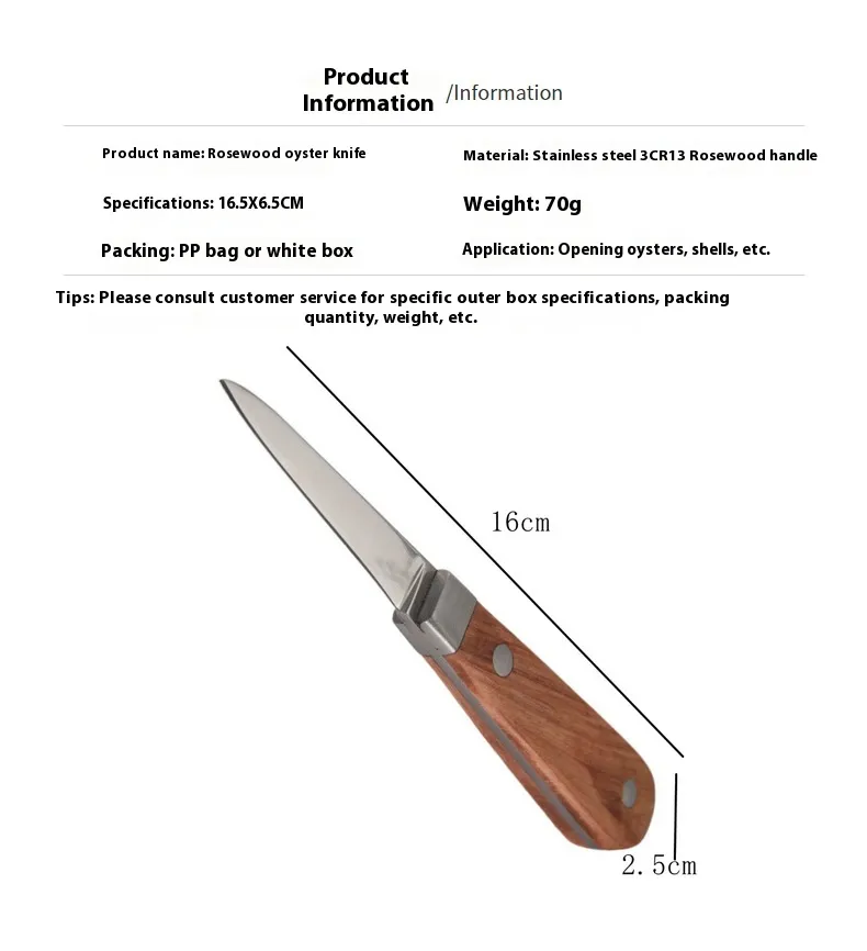 Opting for an Oyster Knife means choosing a tool that is designed specifically for safely and efficiently opening oysters. With its durable construction and ergonomic design, it ensures that you can enjoy oysters without any fuss or mess. Whether you're a home cook or a professional chef, an oyster knife is a must-have for preparing fresh oysters in a safe and controlled manner.