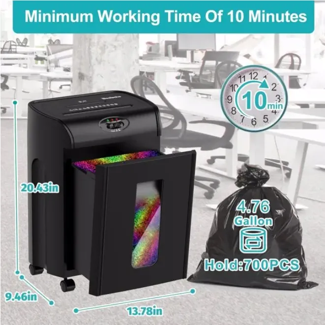 The fast shredding action allows you to quickly process large volumes of paper, streamlining your document disposal and maintaining a clean, organized workspace.