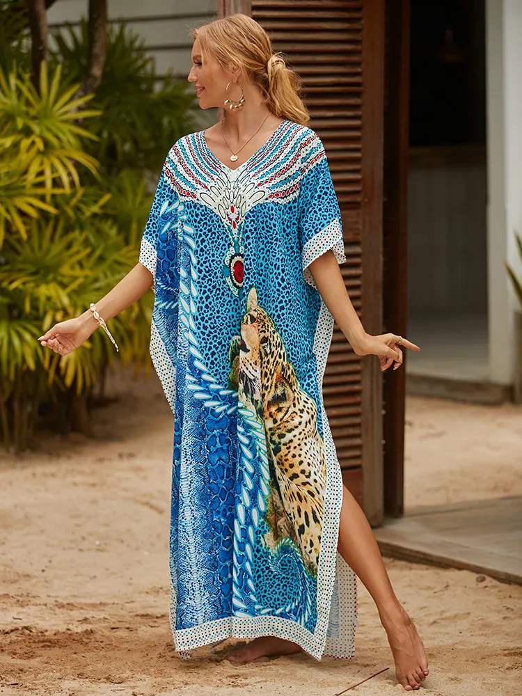 Perfect for holidays, beach days, poolside lounging, casual entertaining, or relaxed evenings at home, Peacock Caftans offer comfort without sacrificing style. Their loose, draped design flatters a wide range of body shapes while allowing freedom of movement and breathable wear throughout the day.