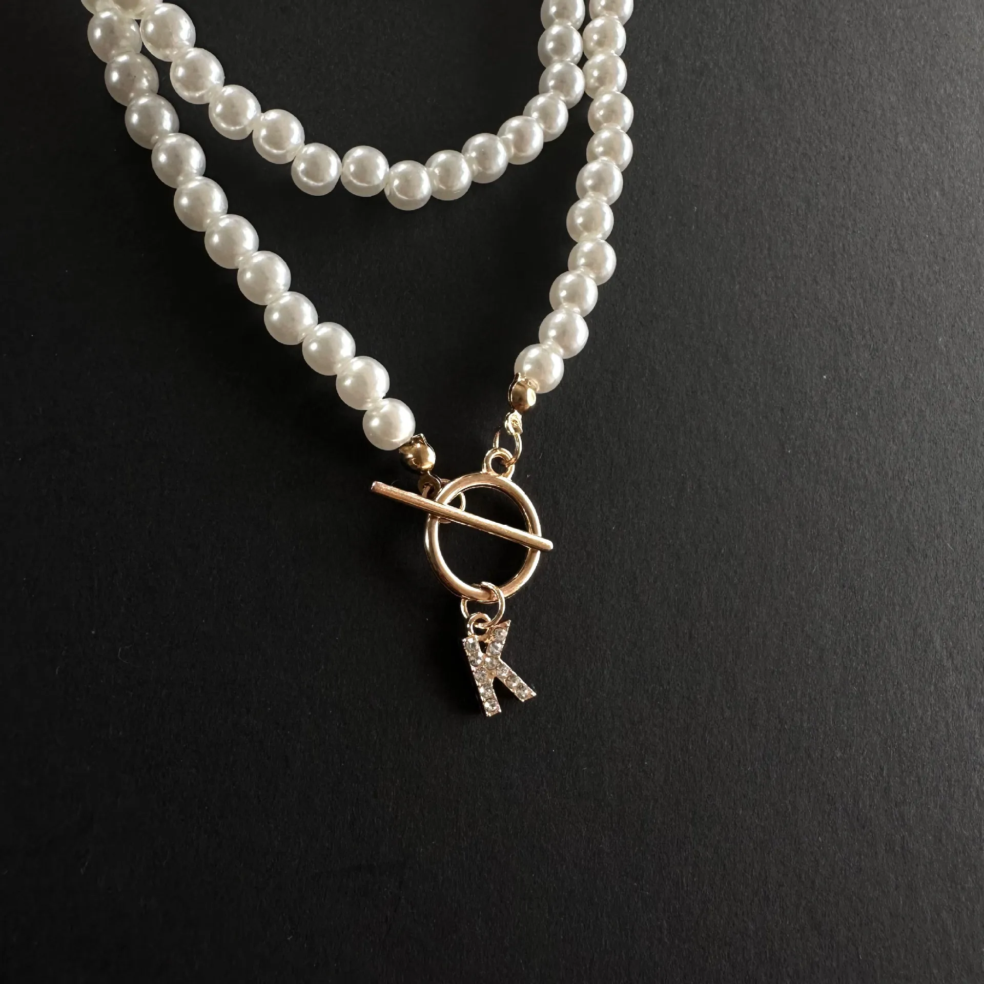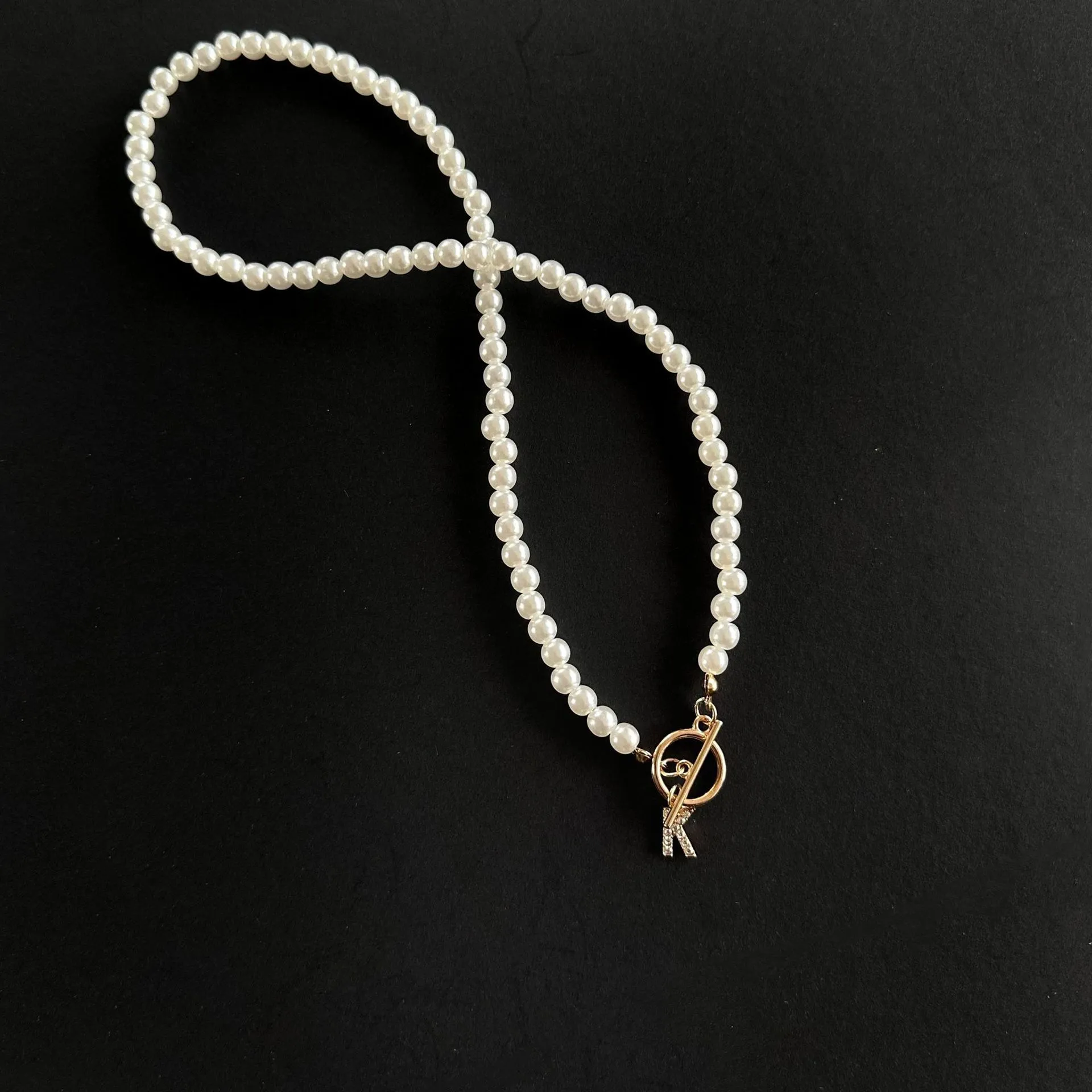 Pearl Chain OT Buckle Inlaid 26 Letter Necklace