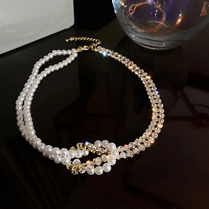 Pearl Crystal Choker Necklaces For Women Short Chain Rhinestone Necklaces Statement Jewelry