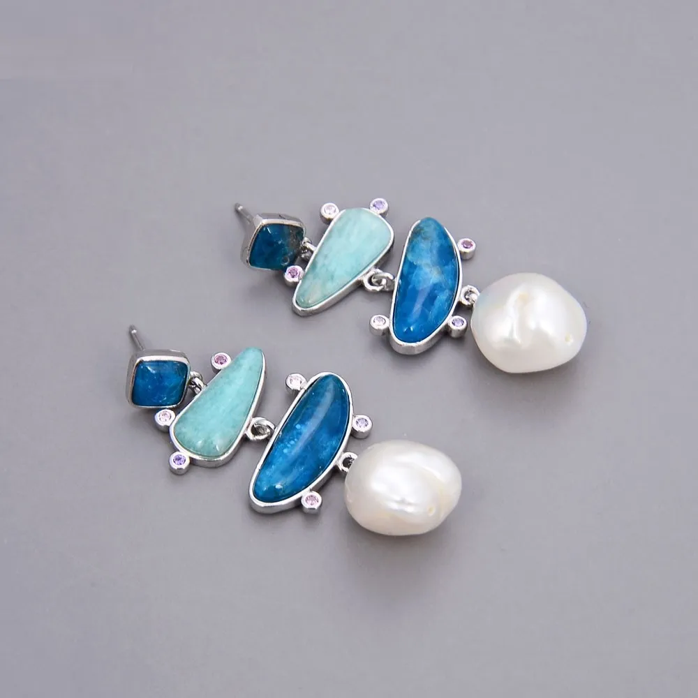 Pearl Earrings Blue Apatite Turquoise Pendant