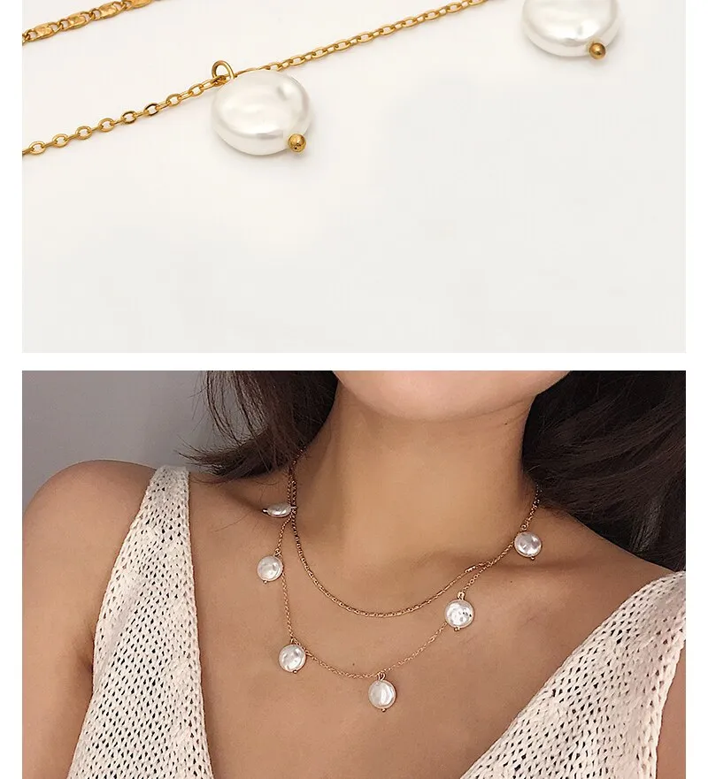 Style: simpleMaterial: Pearl + copper clad iron chain