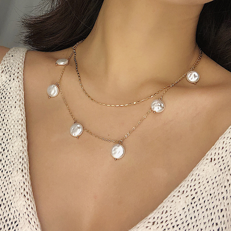 Style: simpleMaterial: Pearl + copper clad iron chain