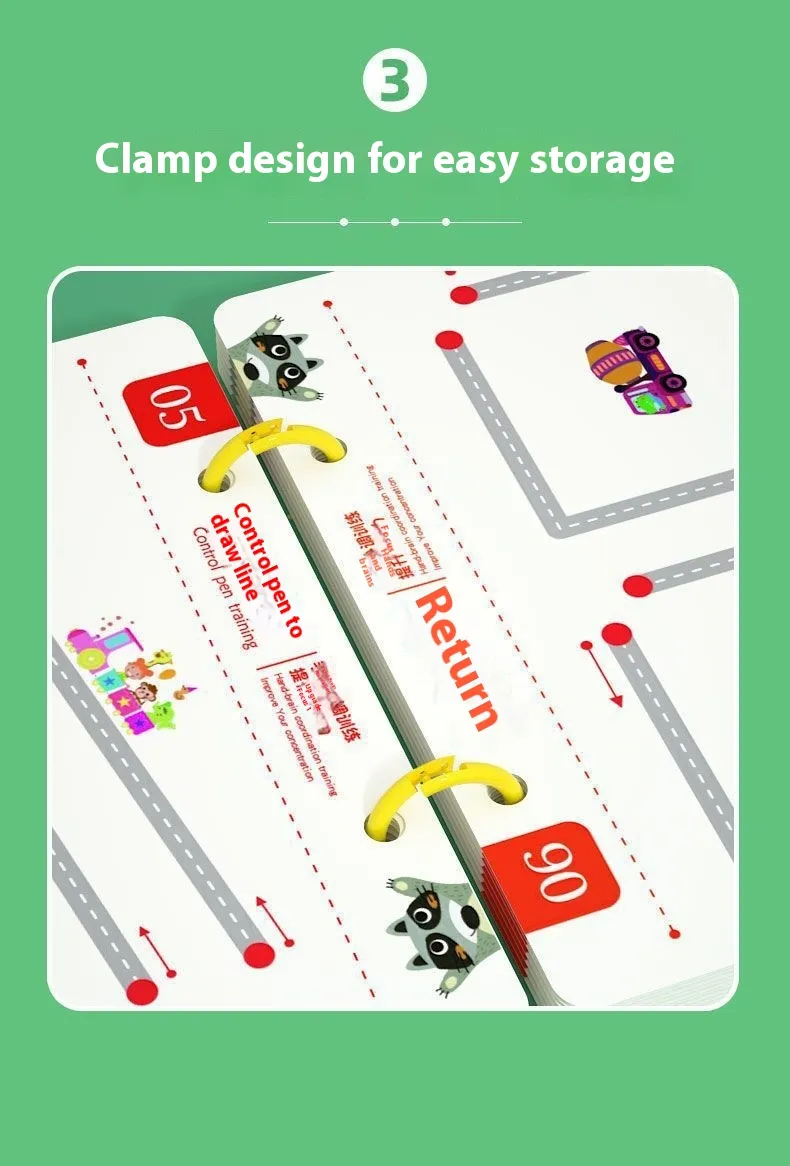Crafted with child-safe, durable materials, the toy is suitable for repeated use, making learning both fun and effective. Its engaging design motivates children to complete various tracing, drawing, and writing exercises, helping them develop concentration, patience, and problem-solving skills while improving pen control.
