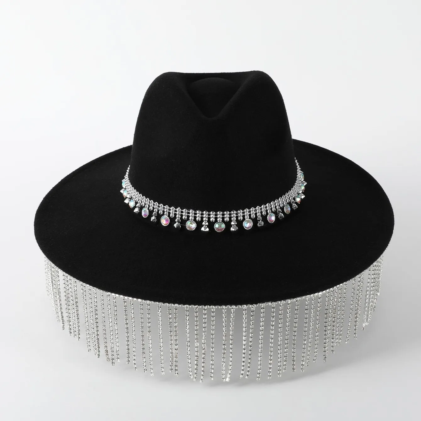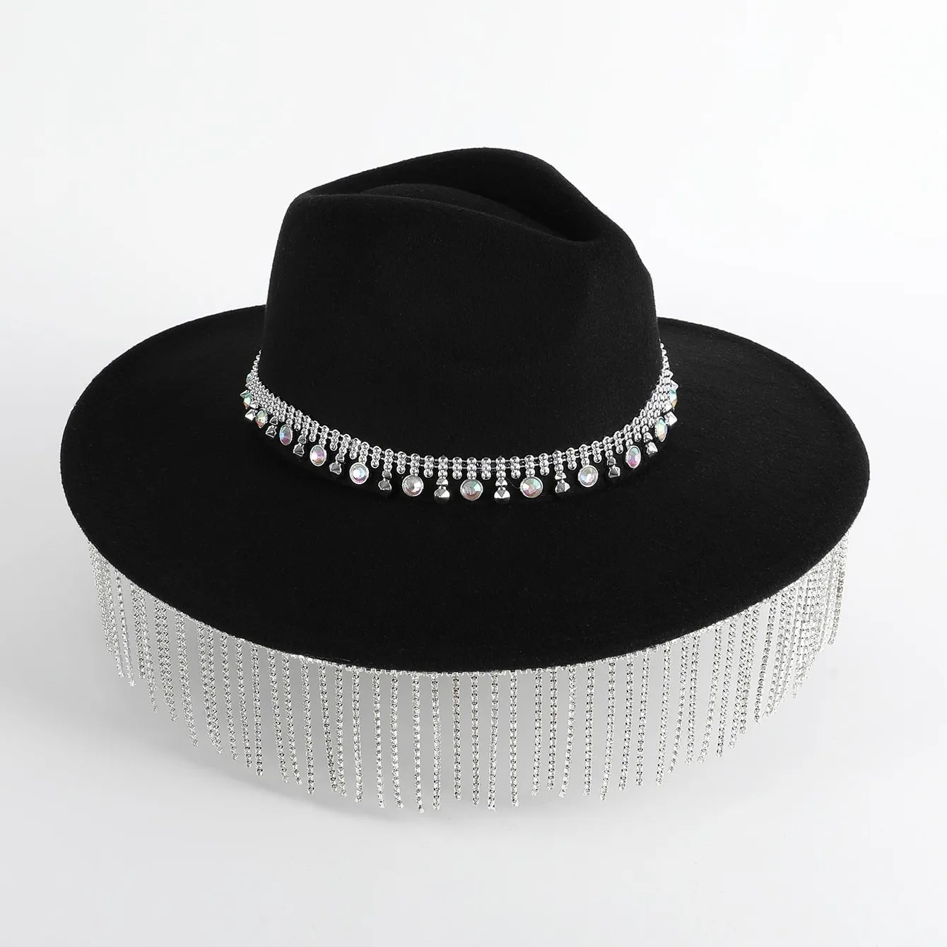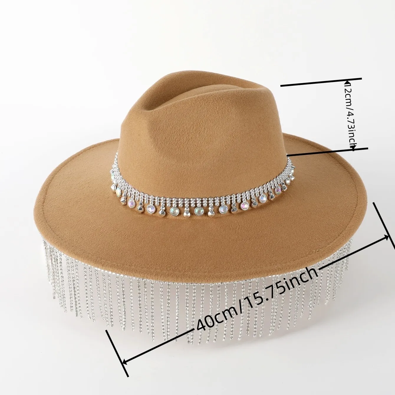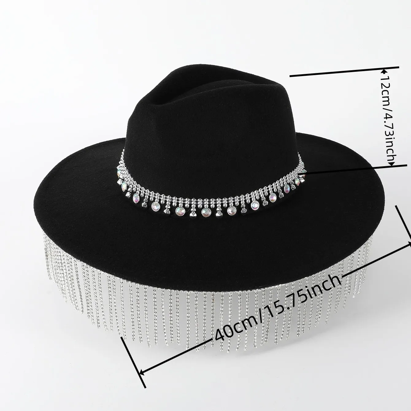 Pendant Wide Brim Top Hat Casual Fedora Hat Women Fur Felt Hat