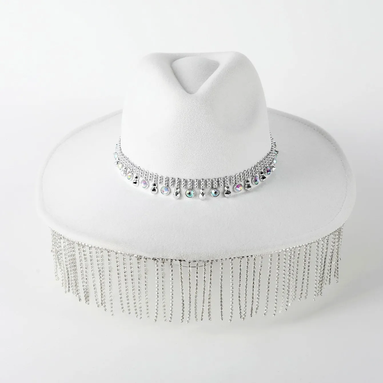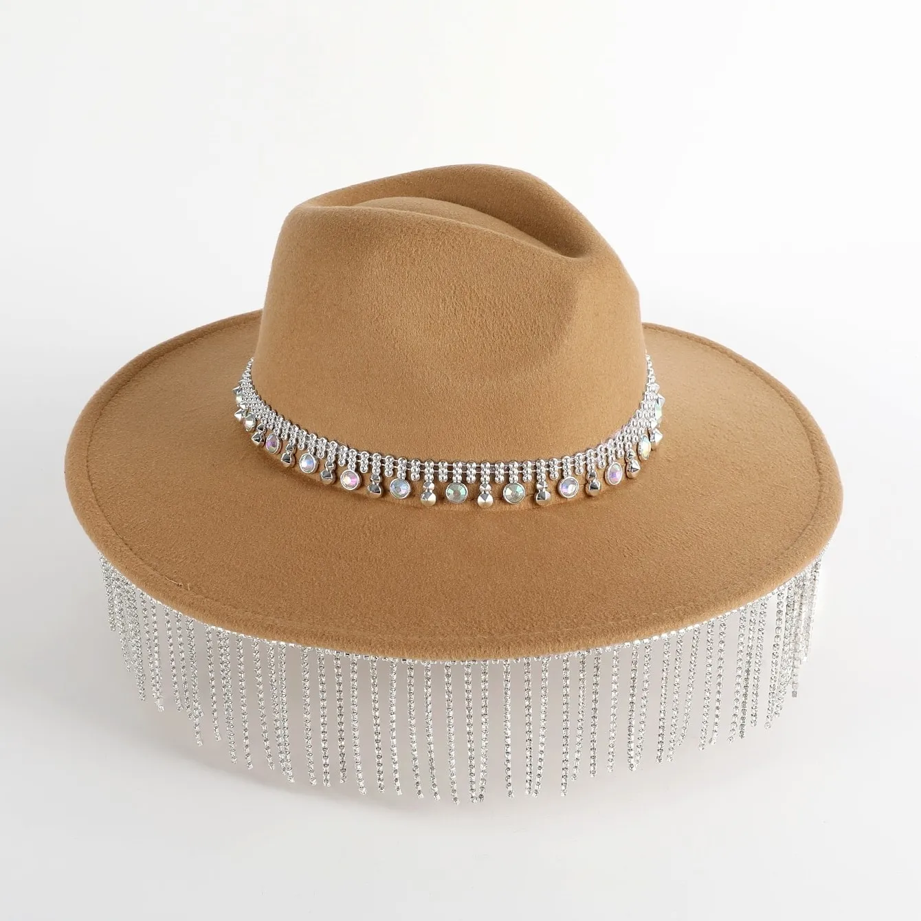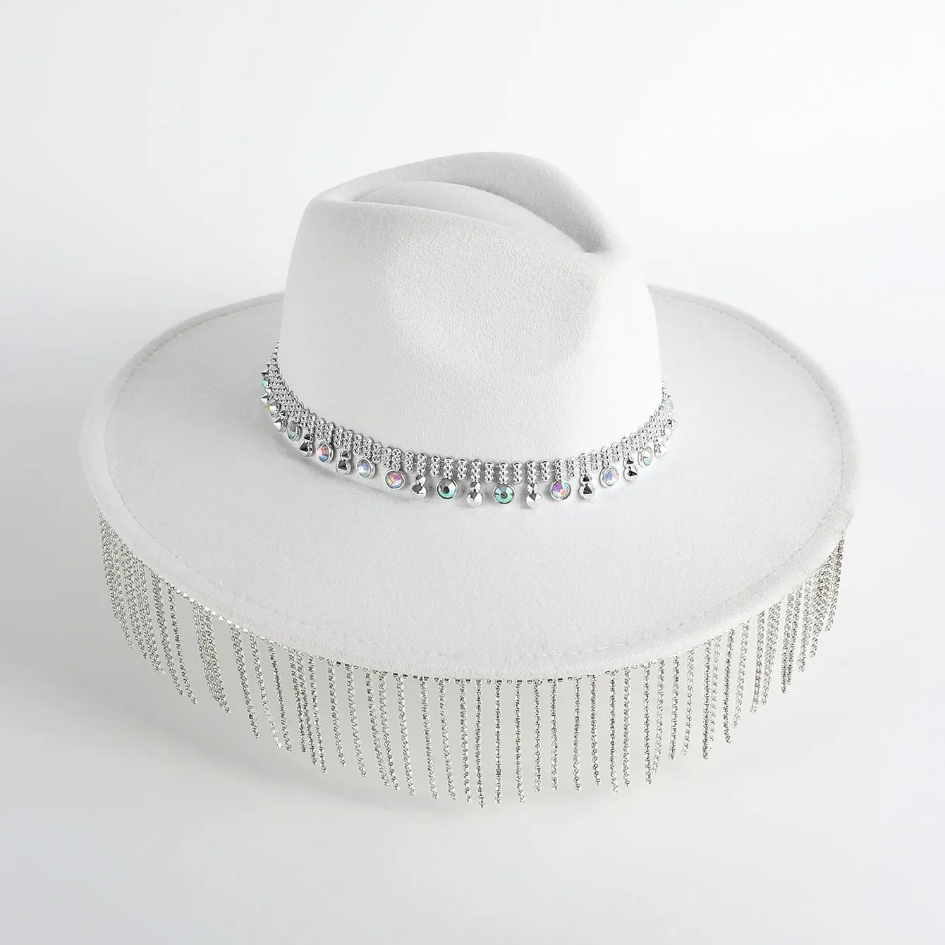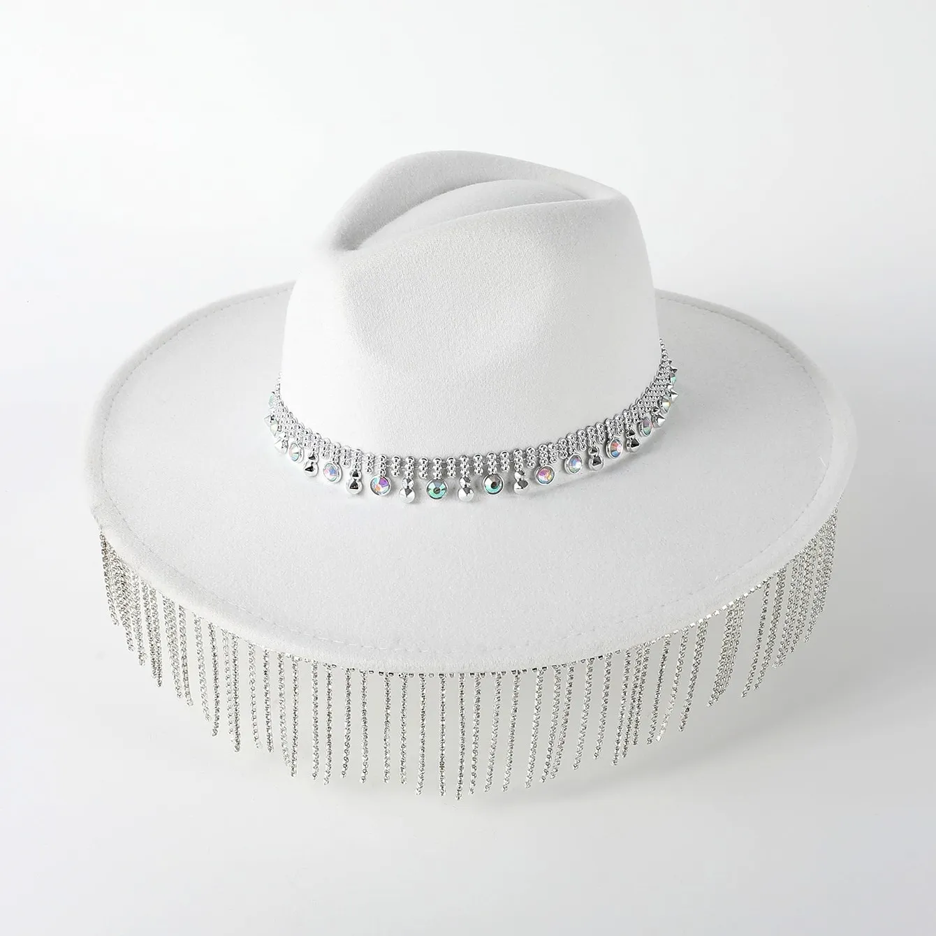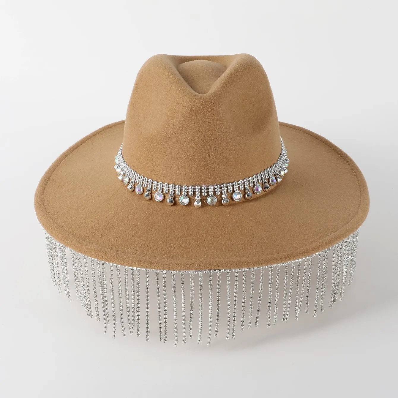 Pendant Wide Brim Top Hat Casual Fedora Hat Women Fur Felt Hat