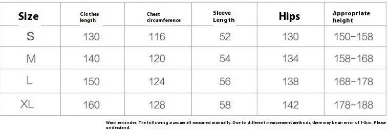 Size: S size recommended height 145-157cm,M size recommended height 158-167cm,L size recommended height 168-177cm,XL size recommended height