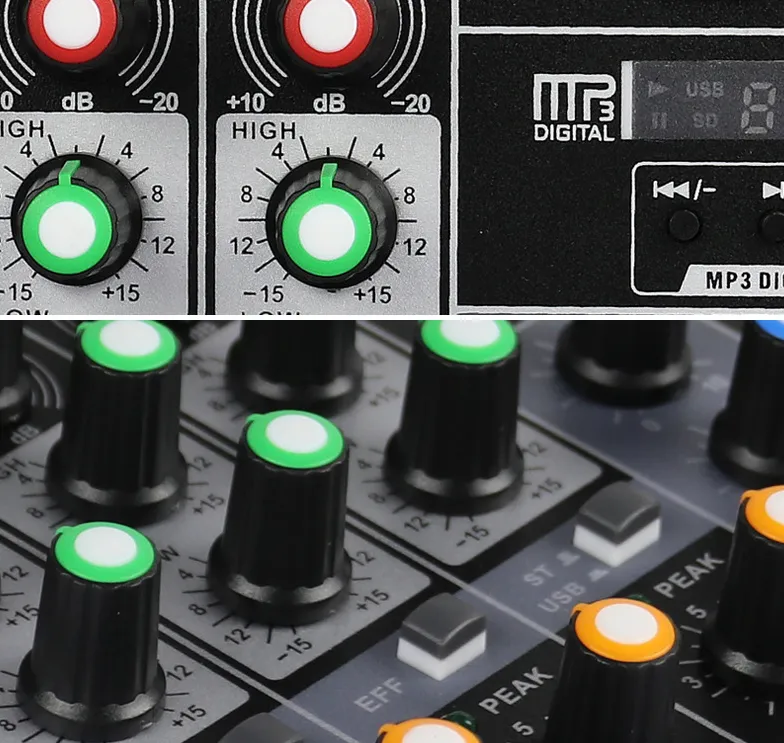 The mixer features simple, intuitive controls for quick adjustments during use. The clear, labeled buttons and easy-to-read dials allow for seamless adjustments, whether you're performing live, recording, or practicing in the studio. You don’t need to be a professional audio engineer to use this mixer effectively—it’s designed for ease of use and accessibility for beginners and experts alike.