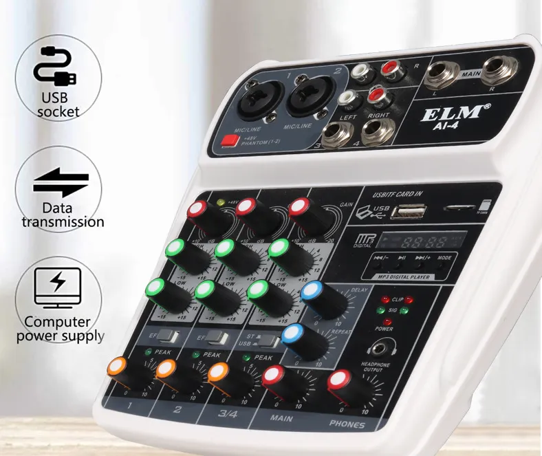 The Performance Singing Recording Portable Mixer is a versatile and powerful audio mixer designed to elevate your sound experience. Whether you're a professional singer, podcaster, content creator, or musician, this 4-way mixer allows you to mix multiple audio sources, providing you with complete control over your performance or recording setup. With its compact design, high-quality sound processing, and easy-to-use controls, the Performance Singing Recording Portable Mixer is perfect for live performances, home studios, or on-the-go recording sessions.