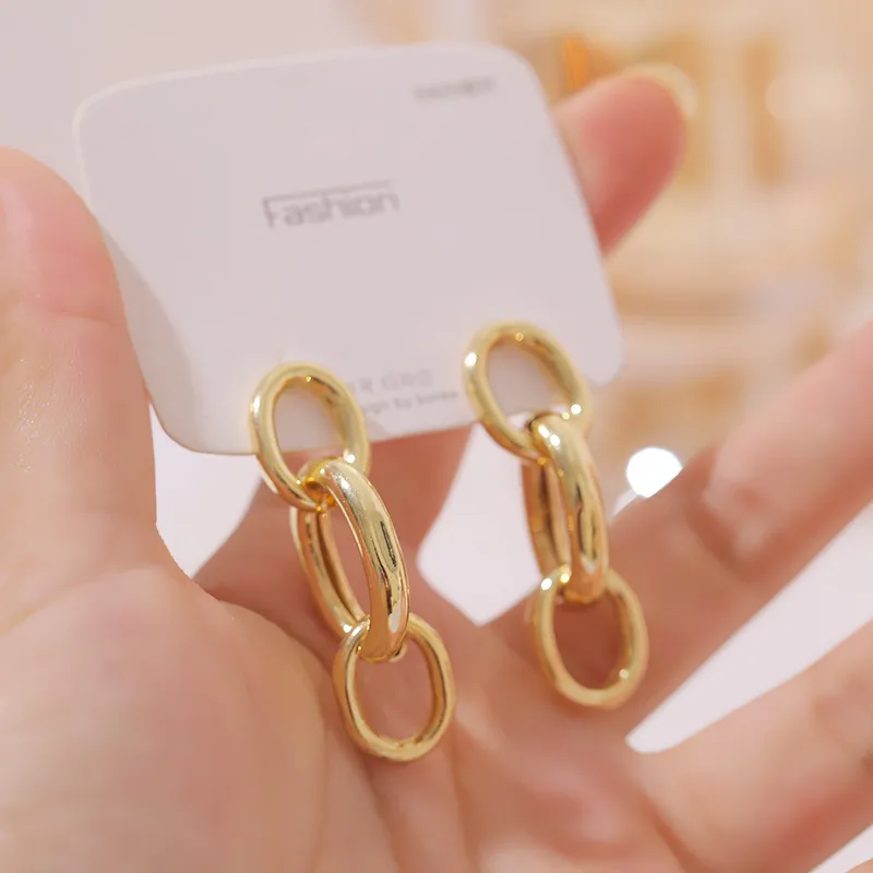 The Personalized Design Chain Temperament Earrings are the perfect accessory for those who love to express their individuality through fashion. These earrings combine the timeless elegance of chain design with a unique, personalized touch, making them an essential piece for any modern jewelry collection. With their ability to elevate any outfit, these earrings offer a versatile option that blends sophistication with style.Whether you're looking for an accessory to add charm to your daily wear or searching for a statement piece to complete your evening attire, the Personalized Design Chain Temperament Earrings are a stunning choice. They embody a sense of temperament—offering a refined and confident look that pairs well with any occasion.
