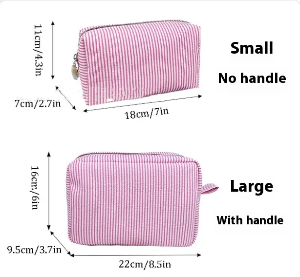 With its spacious interior, the bag provides plenty of room for cosmetics, brushes, and other beauty tools, while its zippered closure ensures everything stays secure. The striped bubble yarn design adds a playful yet chic touch to your makeup collection, making it as fashionable as it is functional.
