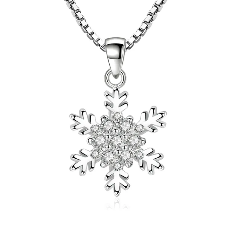 The pendant features a finely detailed snowflake, capturing the delicate and symmetrical beauty of a real snowflake. Its intricate design makes it a unique and charming addition to any jewelry collection.