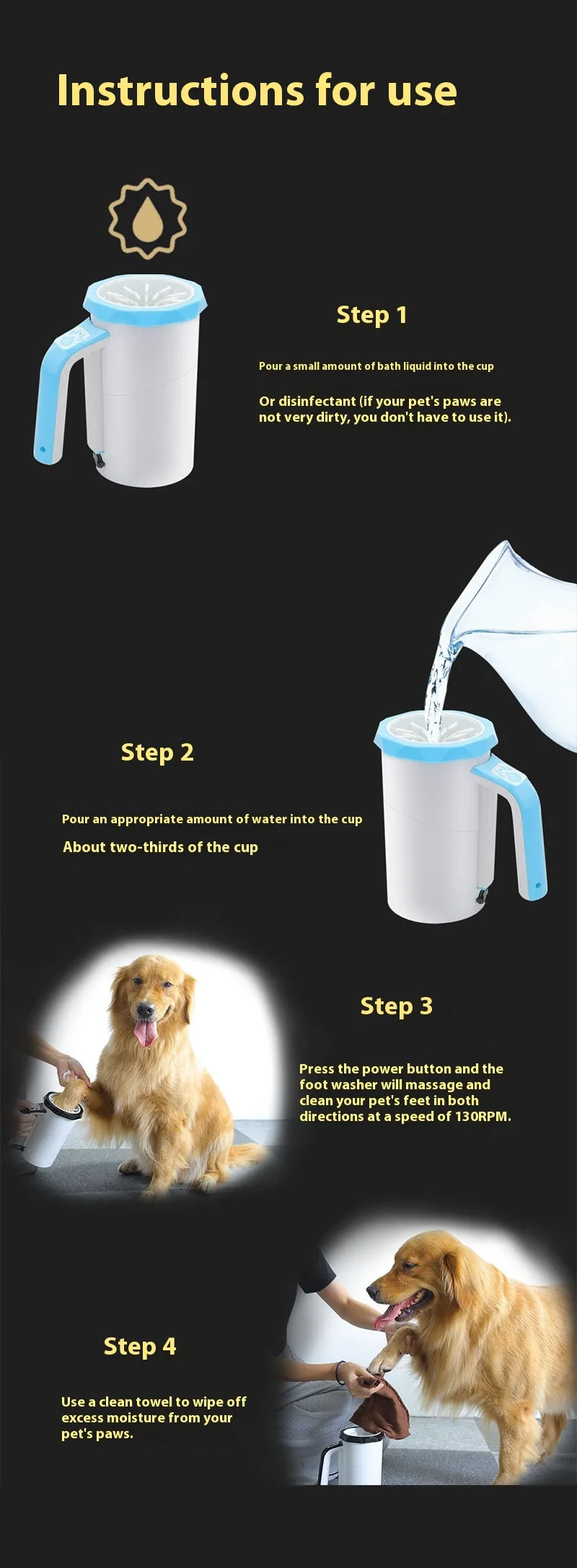 - Rinse and Dry: Remove the paw, pat it dry with a towel, and repeat for all paws.