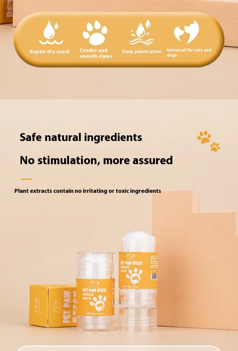 1. Deep Moisturization for Dry Paws The Pet Claw Care Cream is enriched with hydrating ingredients like shea butter, coconut oil, and aloe vera. These ingredients penetrate deep into the paw pads, providing long-lasting moisture to relieve dryness and prevent further cracking.