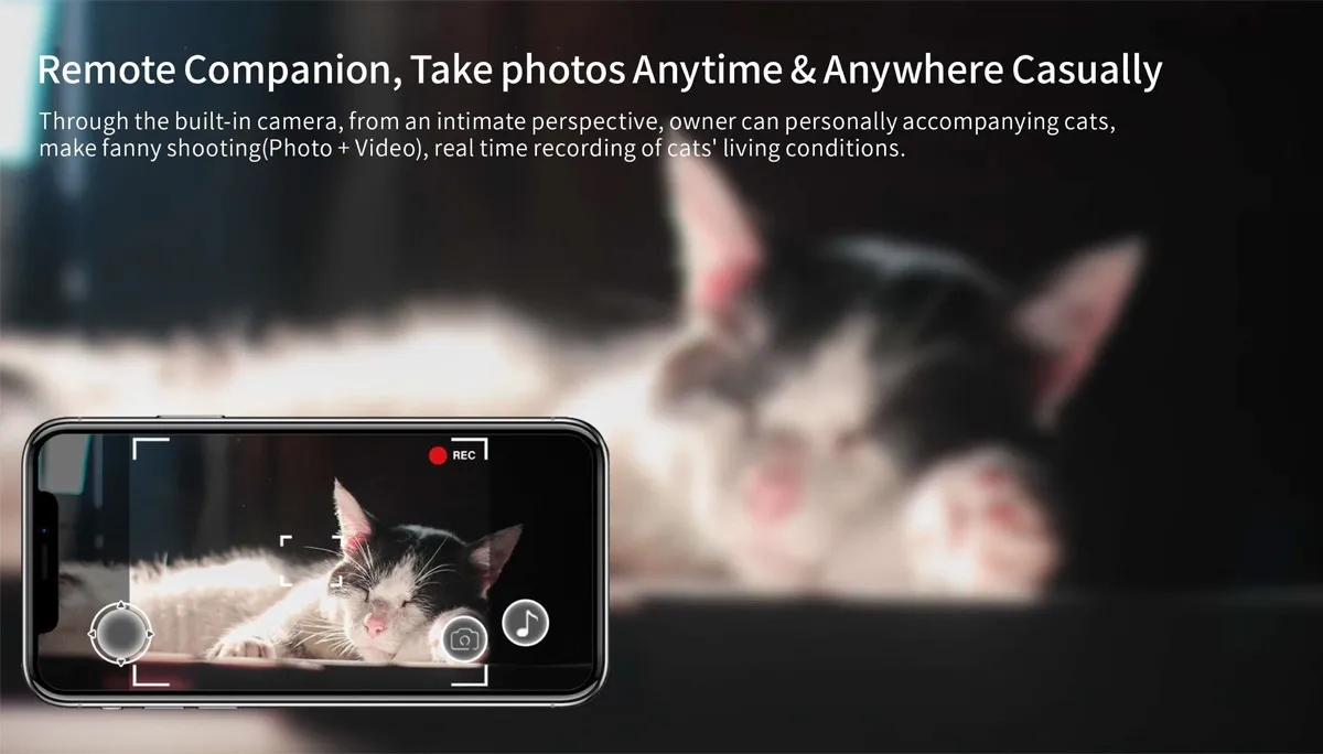 Two-Way Communication: The integrated camera and microphone allow you to see, hear, and talk to your cat in real-time,