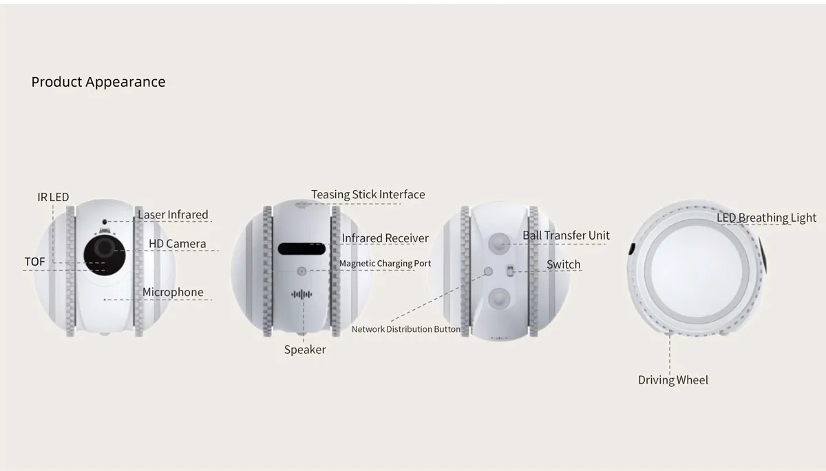 Introducing the Pet Companion Robot with Cat Monitoring, an innovative device designed to enhance the lives of both you and your feline friend. This state-of-the-art robot combines interactive play, health monitoring, and seamless connectivity to ensure your cat remains happy, healthy, and engaged, even when you're not at home.