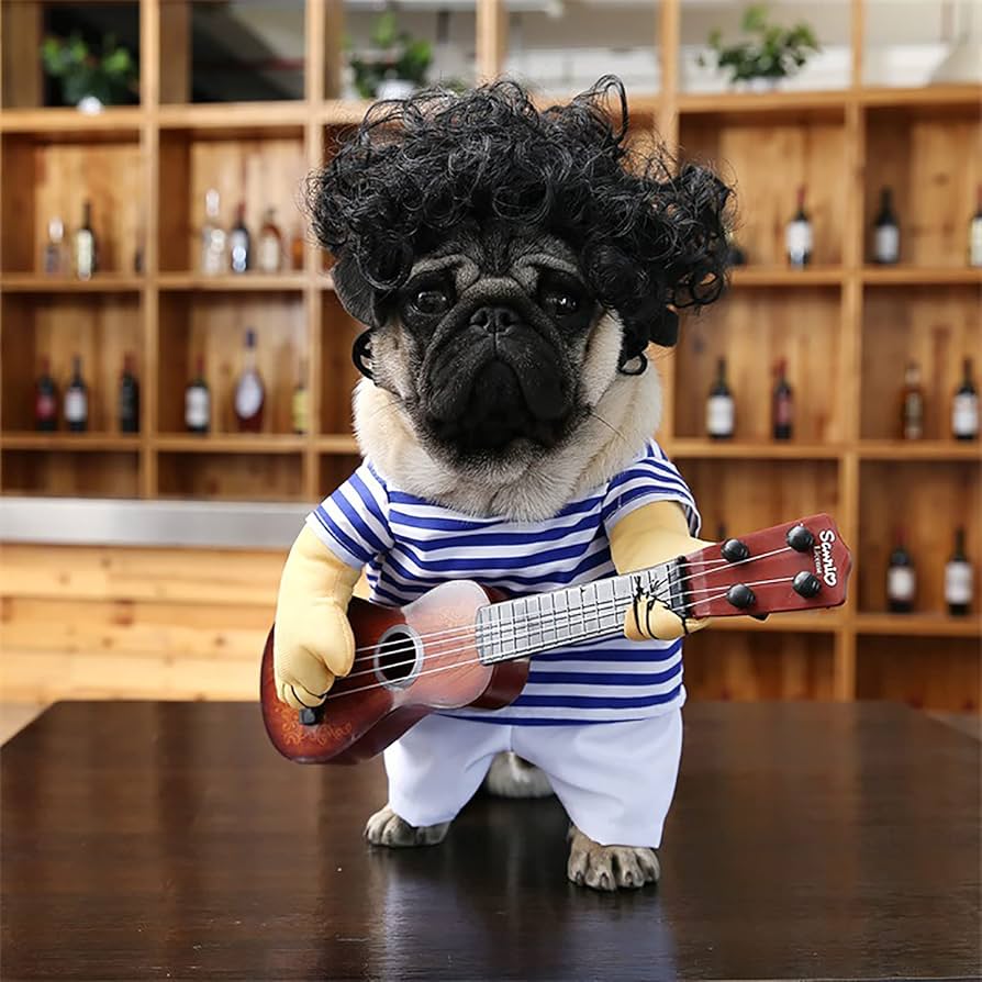 Perfect as a gift for pet owners, the Pet Dog Guitarist Dress is a unique and entertaining addition to any pet’s wardrobe, bringing smiles and laughter wherever your pet goes.