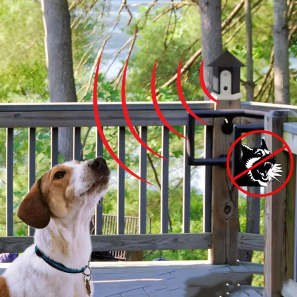 months. The outdoor ultrasonic bark arrester has a power indicator, which can be set to "Off" to protect the battery when you are away.
