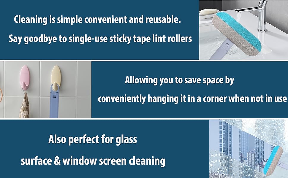 - 【Convenient Design for Effortless Operation】 This lint Brush for pet hair features a 17.3-inch total length, easily cleaning under sofas and behind beds. The 7.3-inch wide head removes hair effortlessly