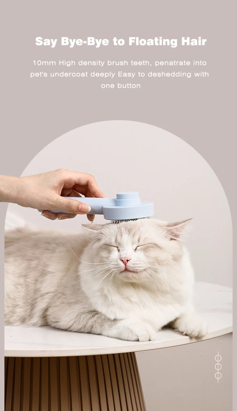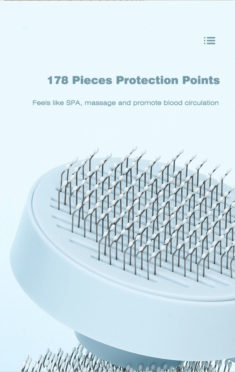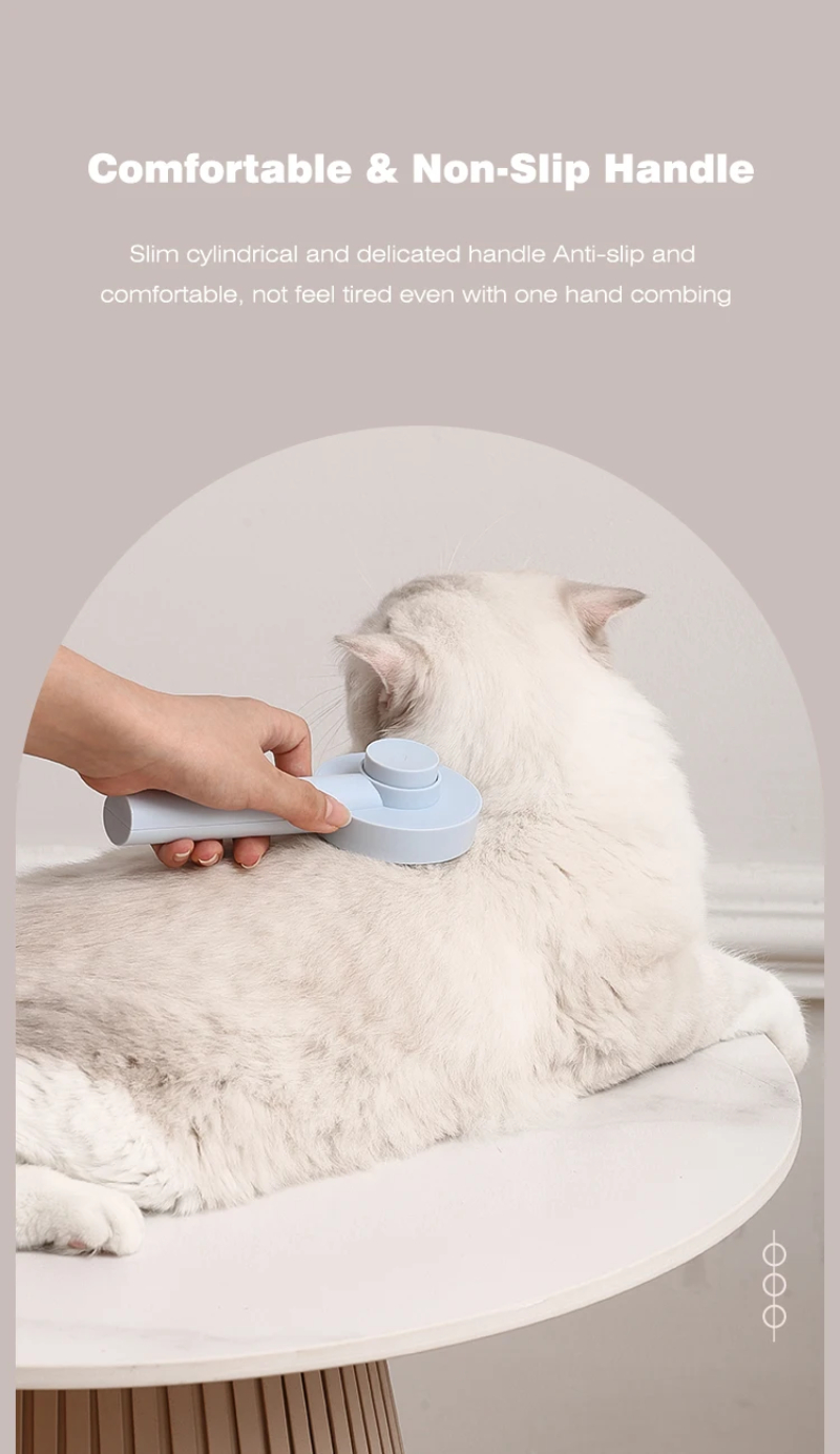 3. One-touch cleaning button: Press the cleaning button to retract the bristles and wipe away the hair. Hair falls out of the brush easily. Our pet brushes are washable to keep the brush hygienic.