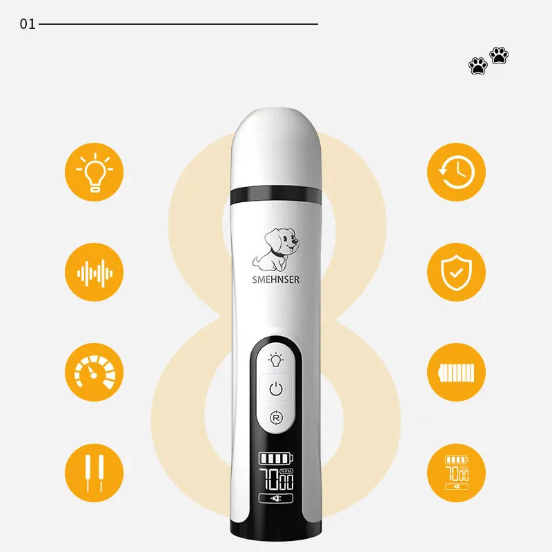 Introducing the Pet Sharpener High Power LED Double Lamp Blood Line Electric Charging Nail Clippers, an innovative grooming tool designed for pet owners who want to maintain their pet's nails with precision, safety, and ease. Whether you have a dog, cat, or small animal, these electric nail clippers make nail trimming stress-free by combining high-power LED lighting, sharp blades, and a rechargeable design. This tool helps you avoid accidents while ensuring your pet’s nails are perfectly trimmed.