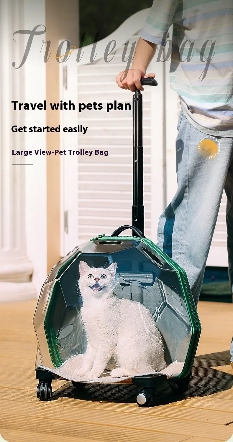 - Whether you're a cat lover or a small dog owner, the Pet Trolley Portable Cat Luggage is designed to cater to the needs of both. With adjustable straps and ample room, your pet can comfortably sit or lie down during travel.