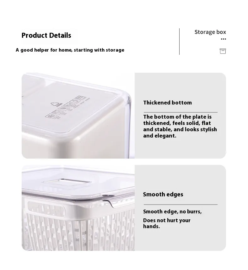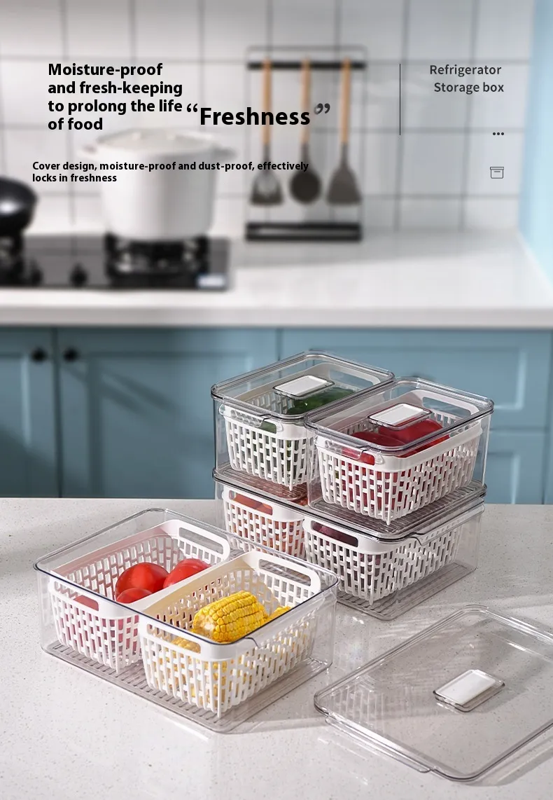 PETG Material Kitchen Fruit Vegetable Storage Plastic Tape Drain Basket Storage Box