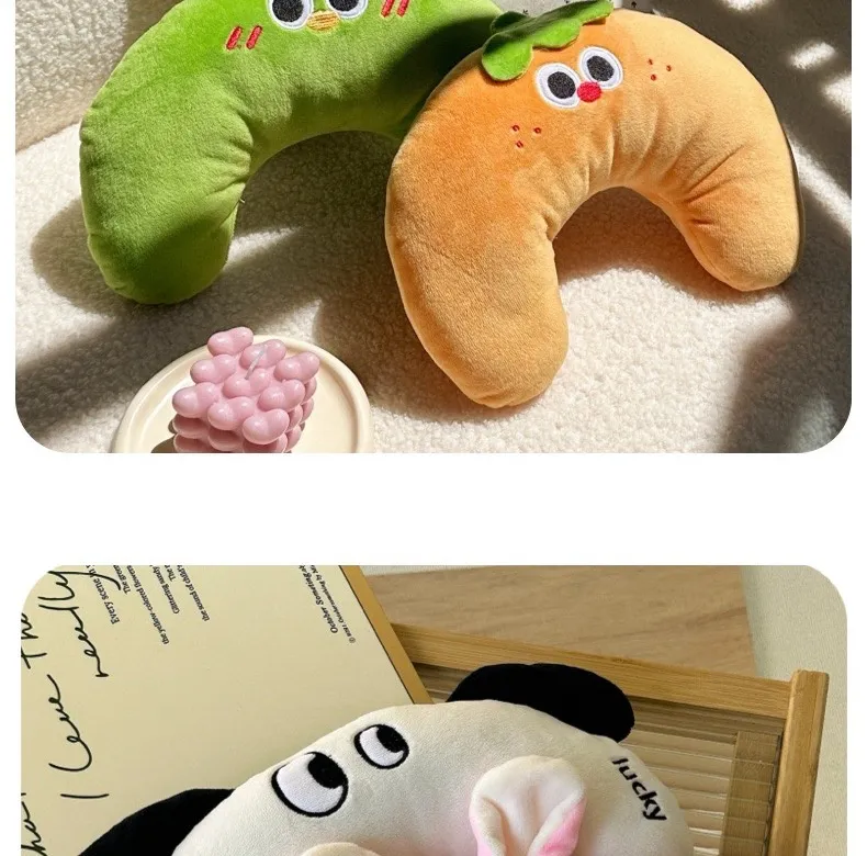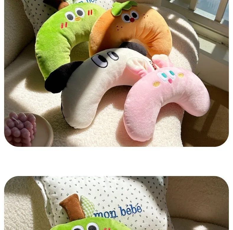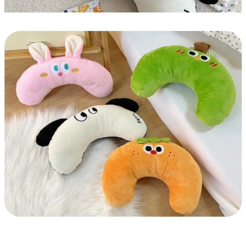 Color: green apple pet pillow, black ear white puppy pillow, cute eyes pink rabbit pet pillow, cute orange pet pillow