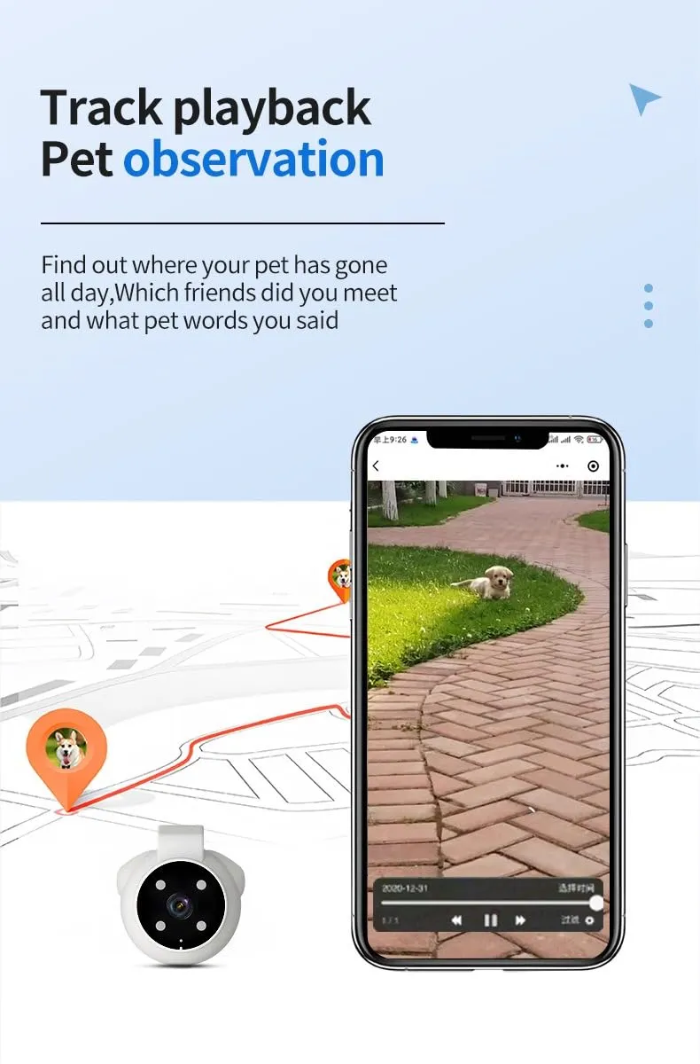 Equipped with a reliable pet tracking feature, this collar lets you keep track of your pet’s location and movements, offering peace of mind, especially in large, open spaces. The collar’s motion recording technology activates with movement, capturing video only when your pet is active to conserve battery life and storage. Its durable design is crafted to withstand an active pet’s lifestyle, whether they're running, jumping, or playing. Lightweight and comfortable, the collar is specially designed for pets, ensuring it won’t cause any discomfort or restrict their movement.