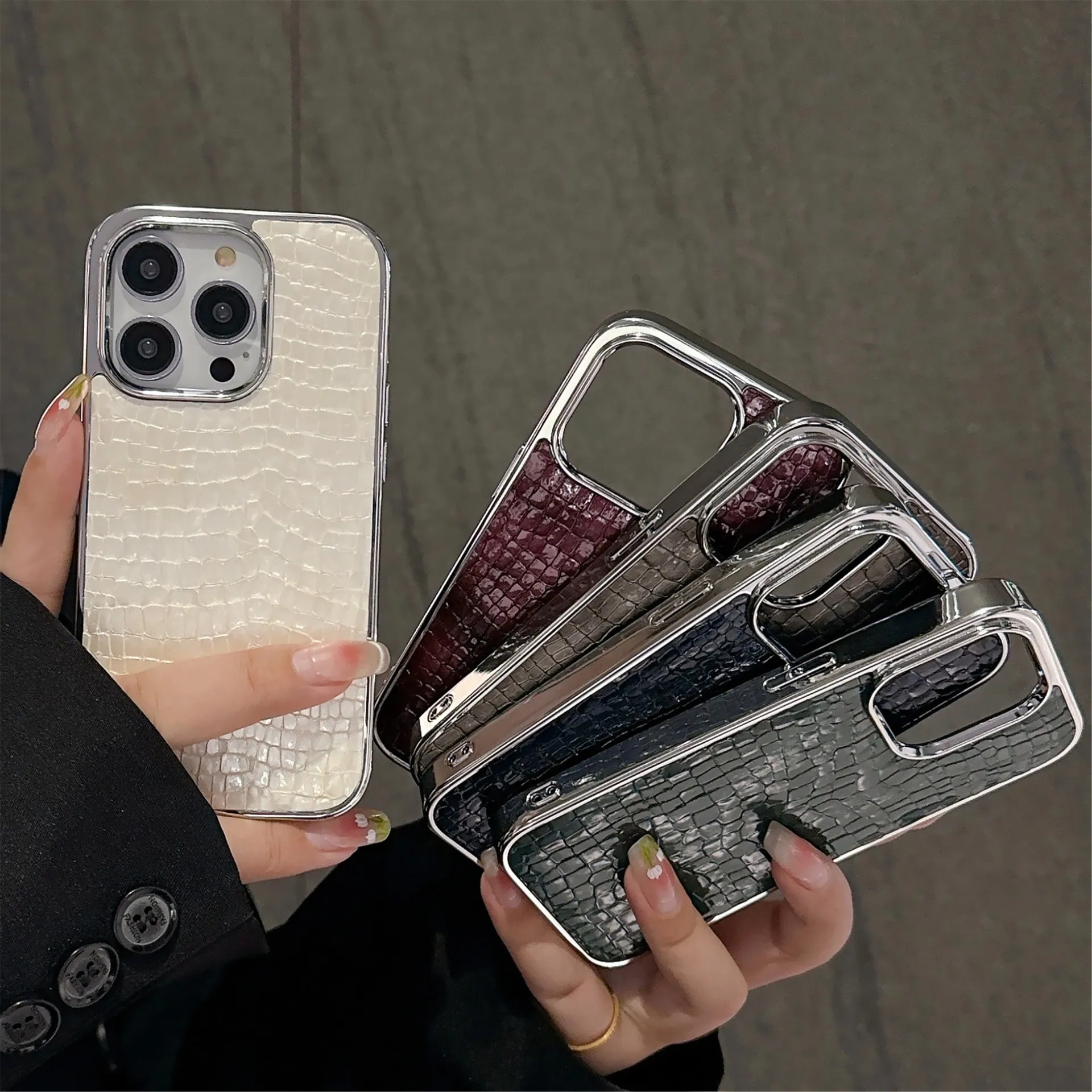Color: Large hole glossy crocodile pattern-black, large hole glossy crocodile pattern-white, large hole glossy crocodile pattern-Silver,